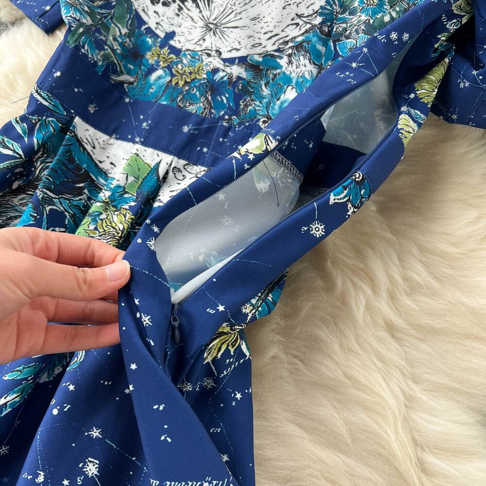 ボヘミアンスタイルの花柄ドレス女性2022年夏半袖ウエストボタンスリムビーチバケーションドレス ショート ハーフスリーブ サマー 夏物 Abe98559946255