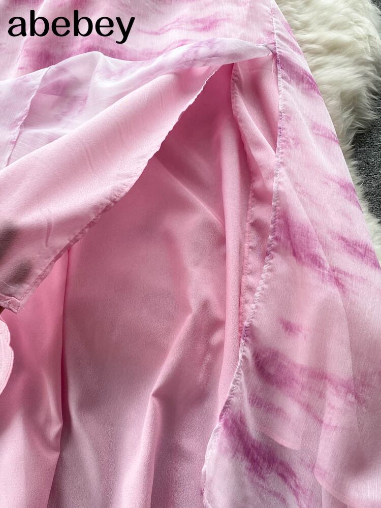 女性アートプリントサマードレス2022バックレスフレンチスタイルシフォンセクシービーチラインロングドレス 夏物 Aライン Abe22388303681