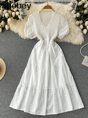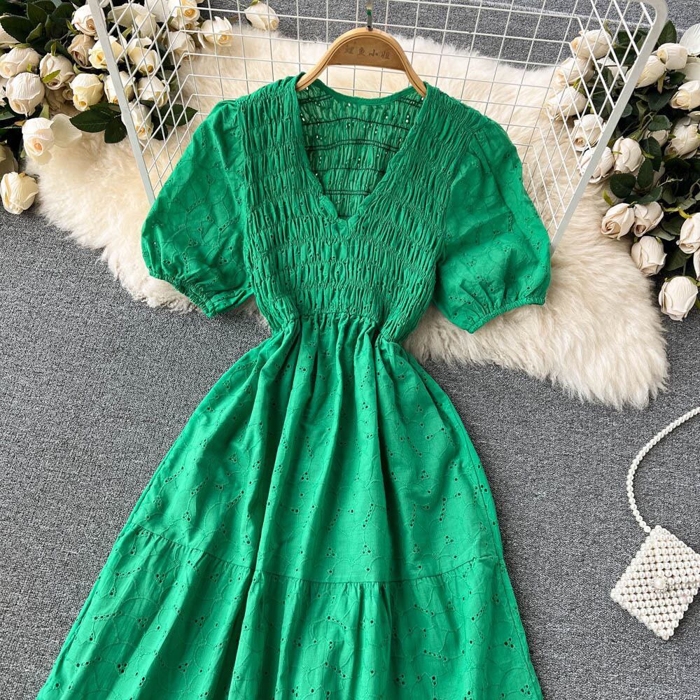 2022Vネックフレンチドレス服Aラインドレス女性サマーミディロングビーチサンドレスローブ 夏物 Abe41975419931