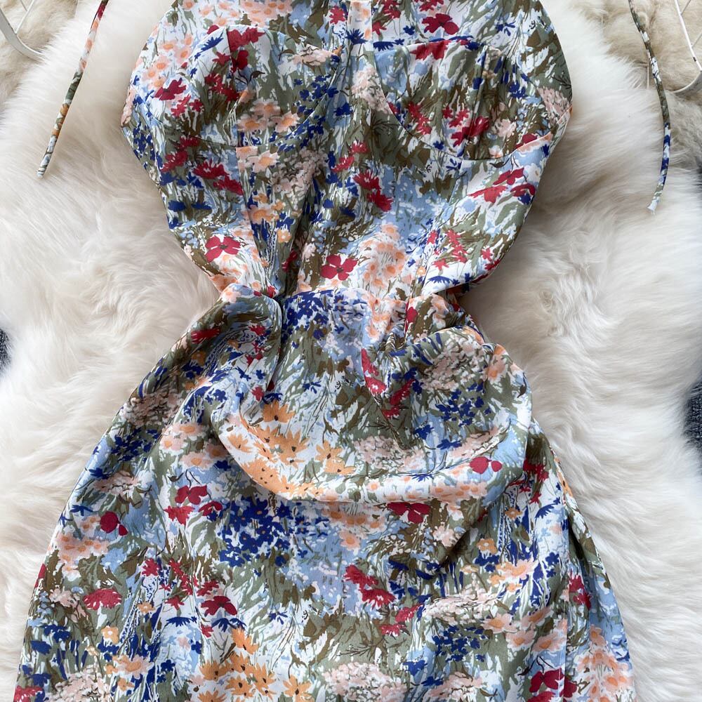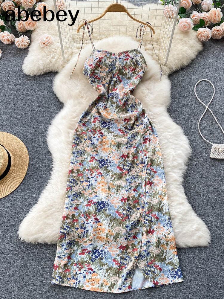 スタイルの女性のサマードレス2022ジッパーバックレススリムバケーションフローラルプリントビーチAラインミディドレス 夏物 花柄 Abe59579427925