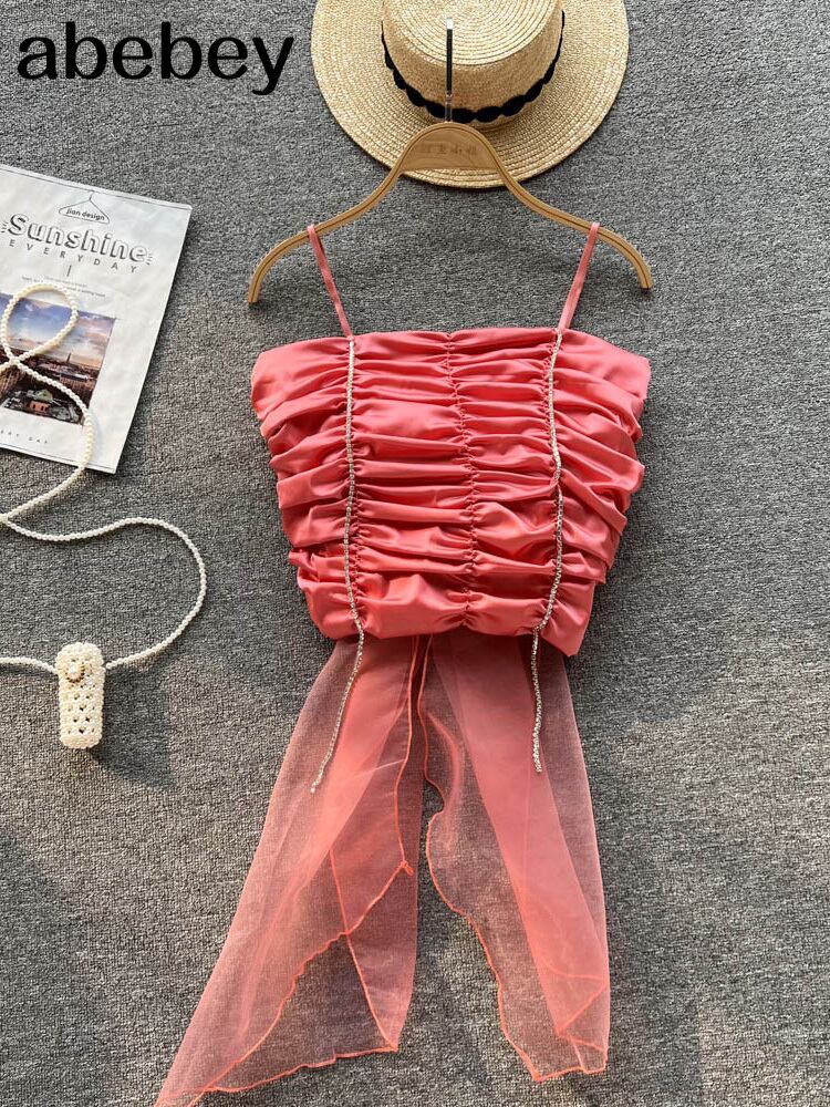 Camis Women SolidBowIrreguarlクロップトップノースリーブTシャツニットスリムsセクシースウィートシックスリムベーシックタンクストリートウェア リボン 大人ガーリー キュート カジュアル ソリッドカラー Abe54070974870