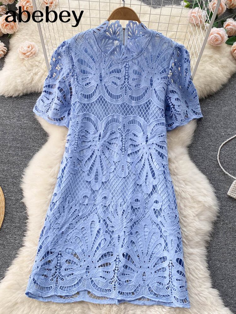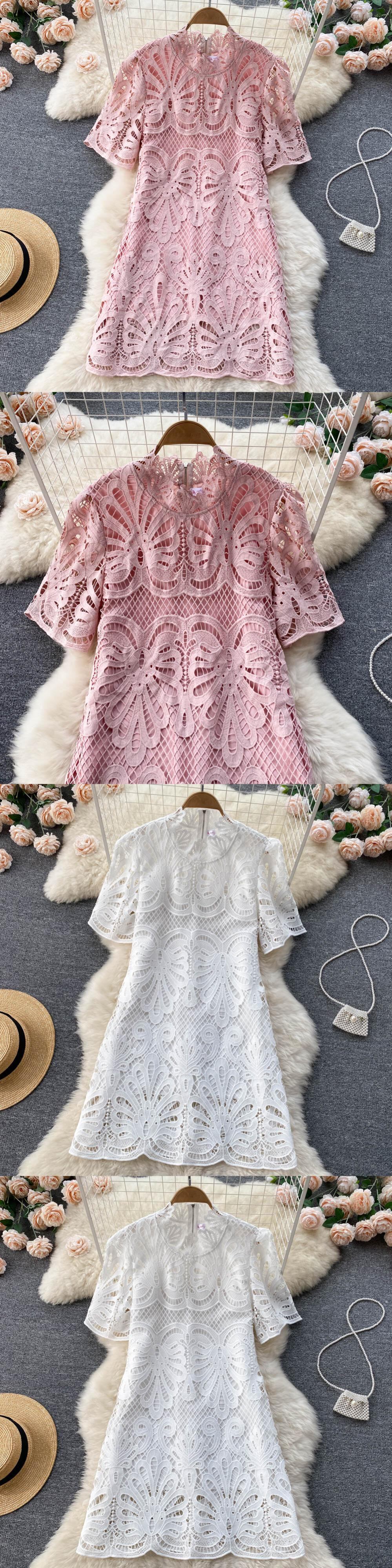 レース夏フレンチスタイルドレス女性2022メッシュ刺繡ビーチバケーションロマンチックなスリムドレス 刺繍 サマー 夏物 Abe51687182662