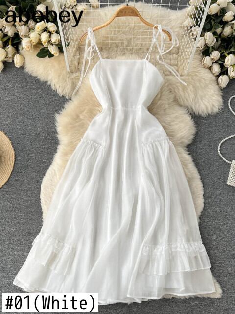 女性フレンチスタイルロングドレス2022年夏バケーションボウバックレスセクシースリムパーティービーチAラインドレス リボン サマー 夏物 Abe39823106335