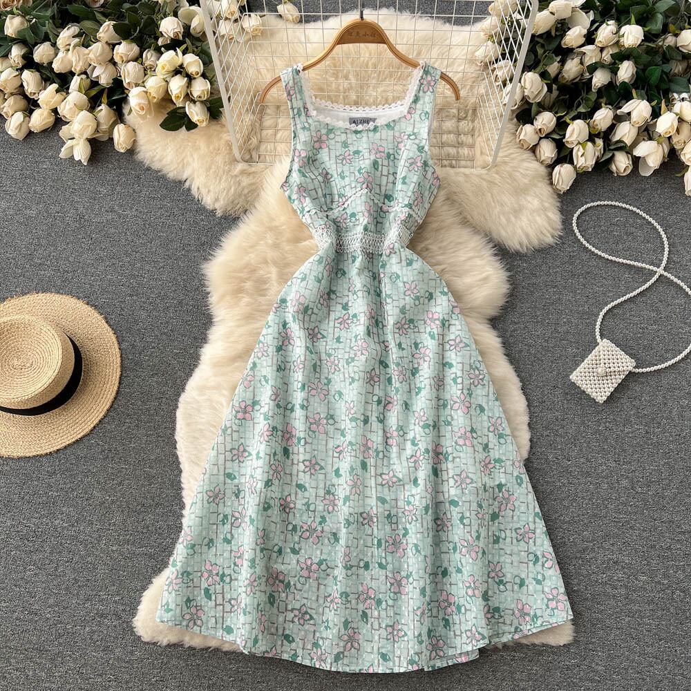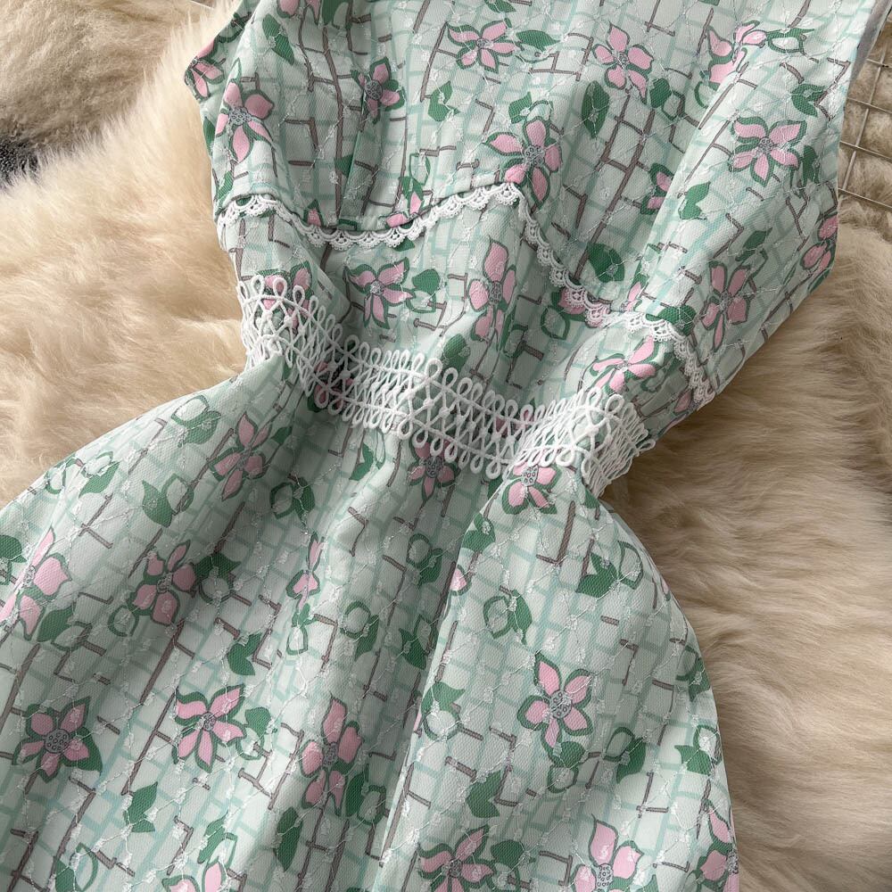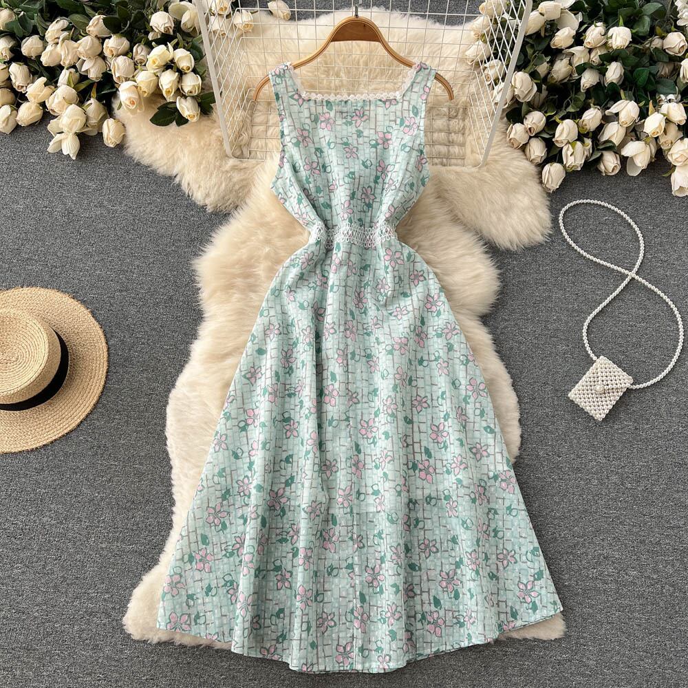 2022年夏のタンクストラップドレス女性の休暇スプリットプリントサンドレスRucehedジッパーフレンチロングミディドレス サマー 夏物 Abe26476440390