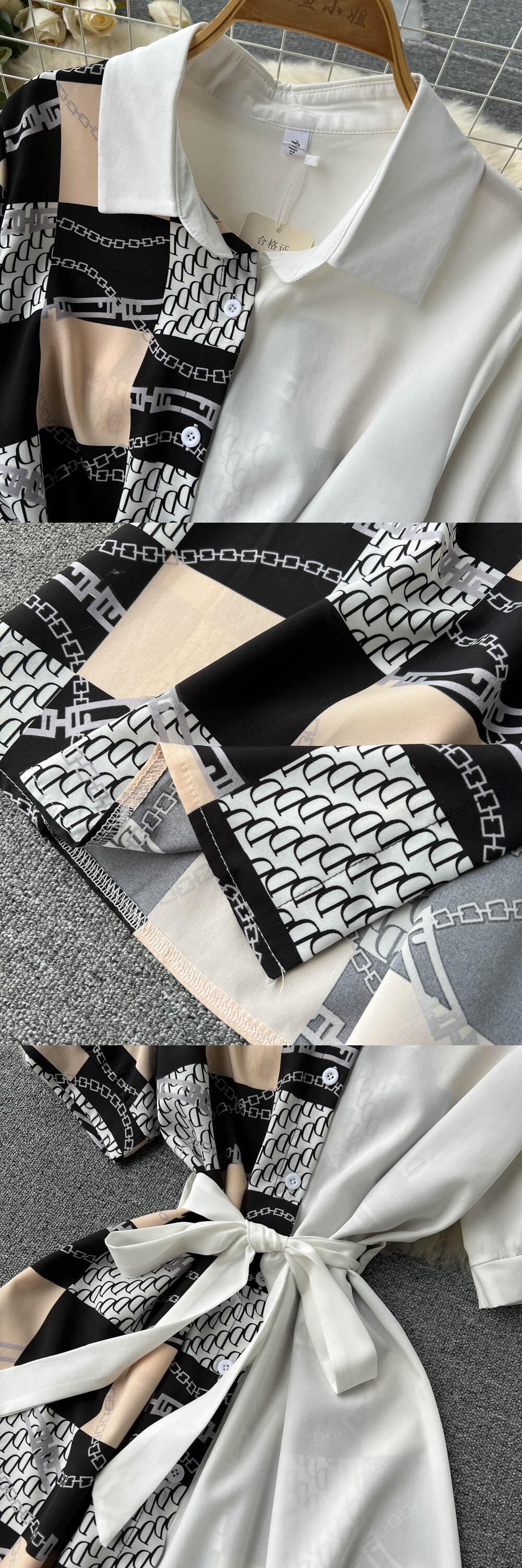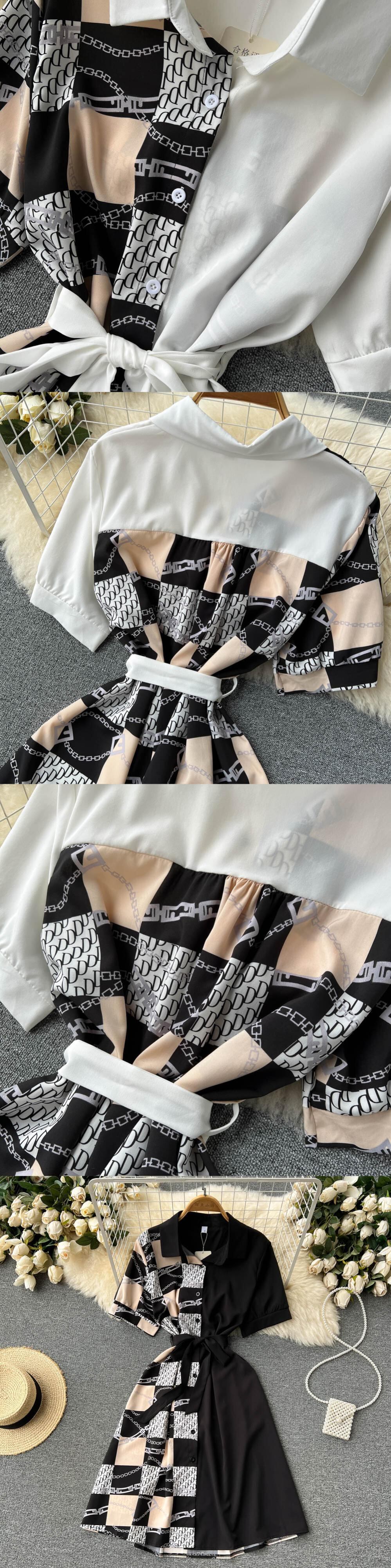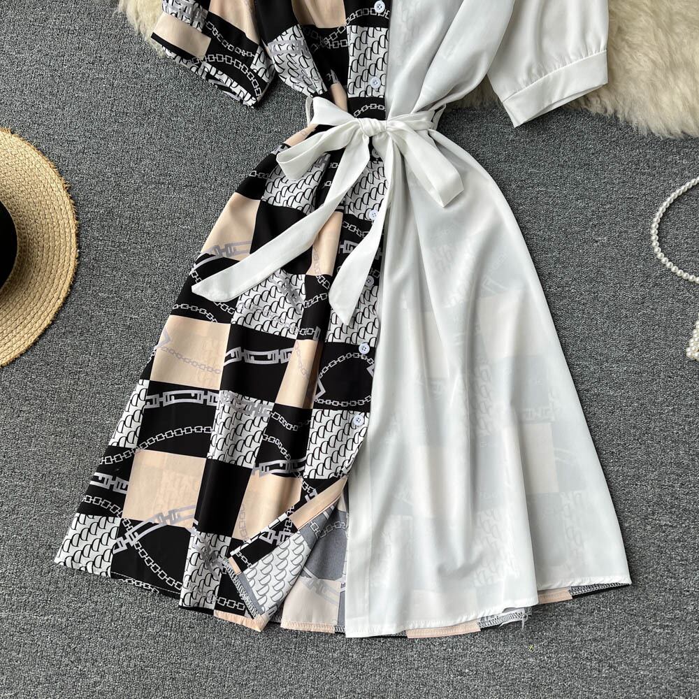 女性2022プリントブラウスドレスフレンチ半袖レースアップAラインVestidosストリートウェアロングローブ ショート ハーフスリーブ Abe83828532511