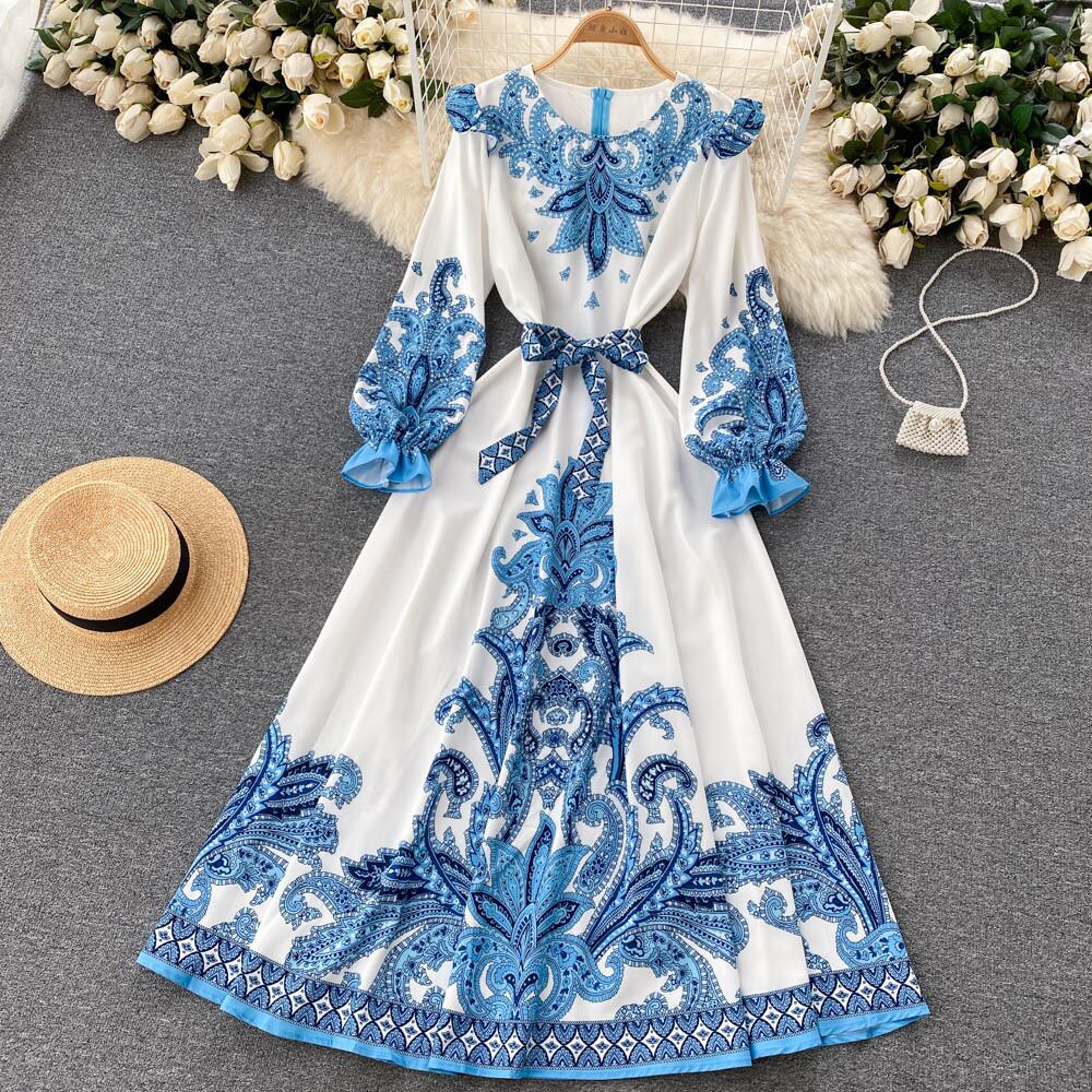 プリントレディースサマードレス2022サッシOカラー半袖スリムフローラルビーチAラインマキシロングドレス ショート ハーフスリーブ 夏物 花柄 Abe74195060086