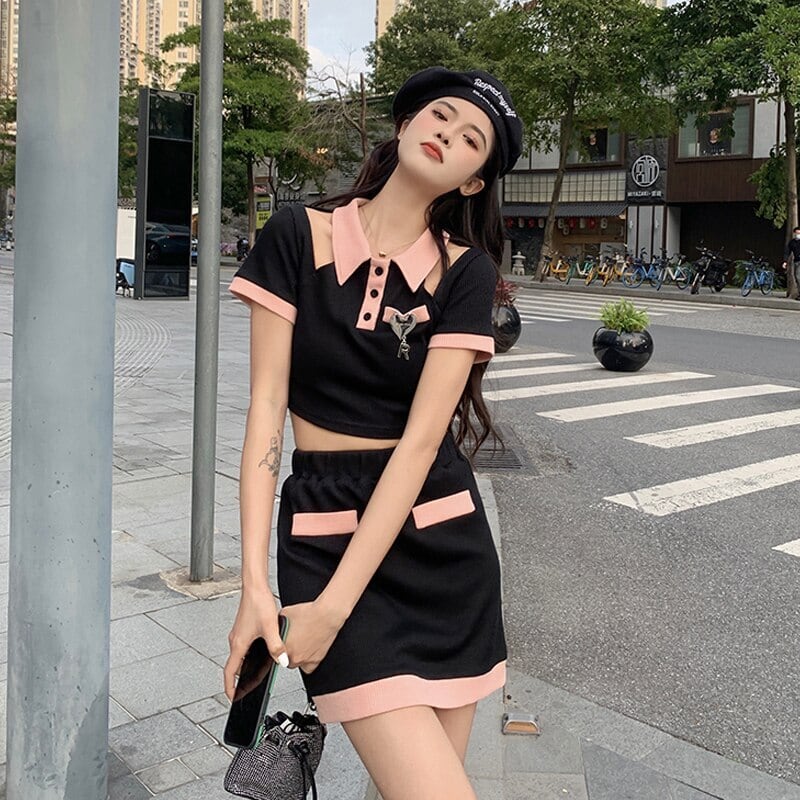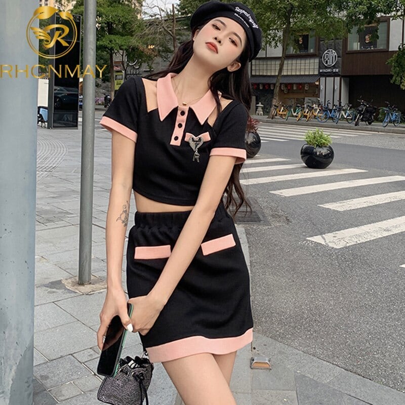 2022年サマーガールズセータースーツ半袖プルオーバートップ+スカート2点セットクリックスモールフレグランススーツ ショート ハーフスリーブ 夏物 Rhc89202775029