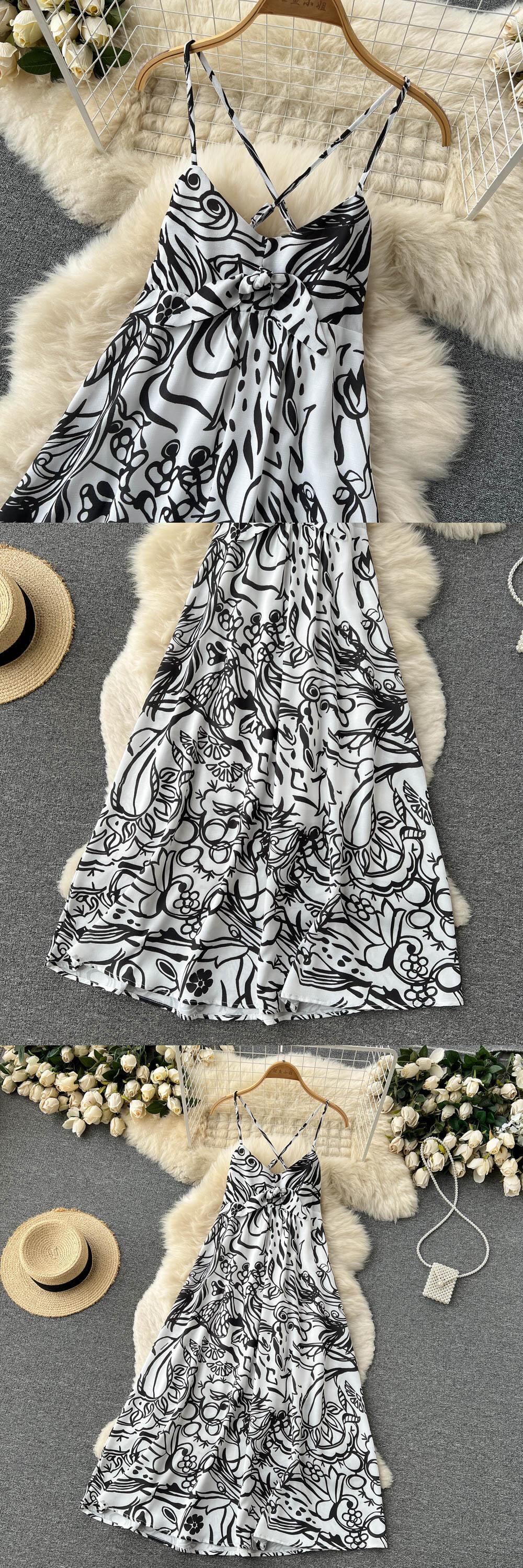女性ヴィンテージプリントロングドレス夏ノースリーブVネックスパゲッティストラップマキシドレスセクシーな背中の開いたパーティードレス サマー 夏物 ビンテージ Abe60508659709