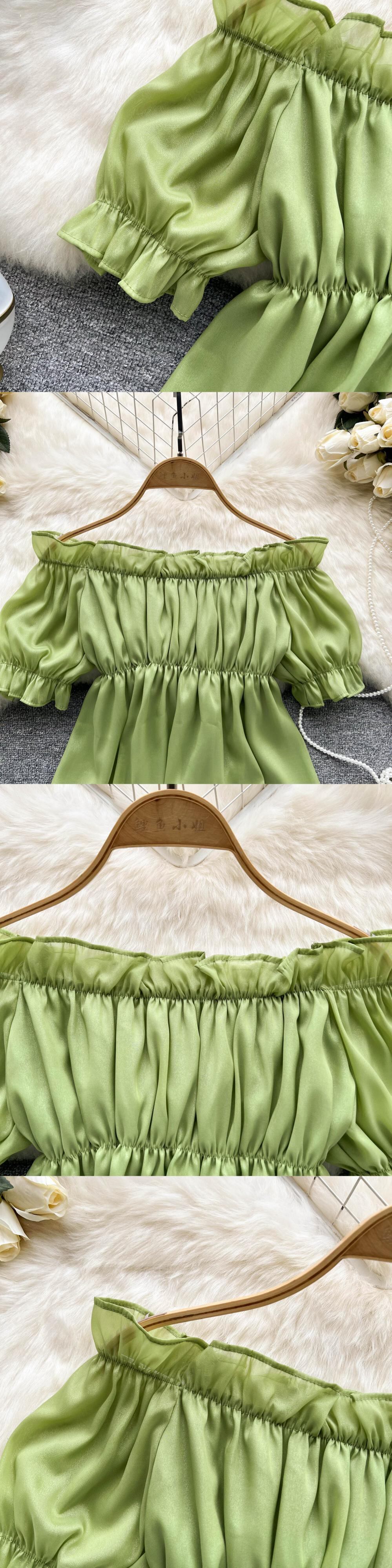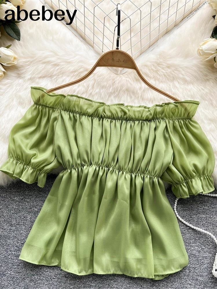 サマータンクビーチの女性クロップトップシャーリングプルオーバー伸縮性ウエストオフショルダーセクシーなストラップレスホリデークラブ半袖 ショート ハーフスリーブ エラスティック 夏物 Abe84809729159