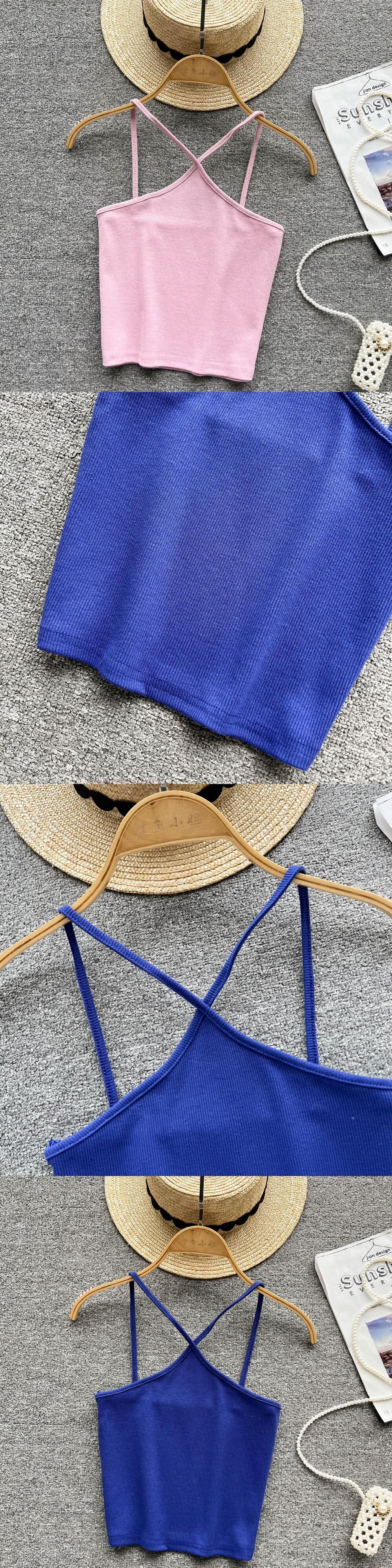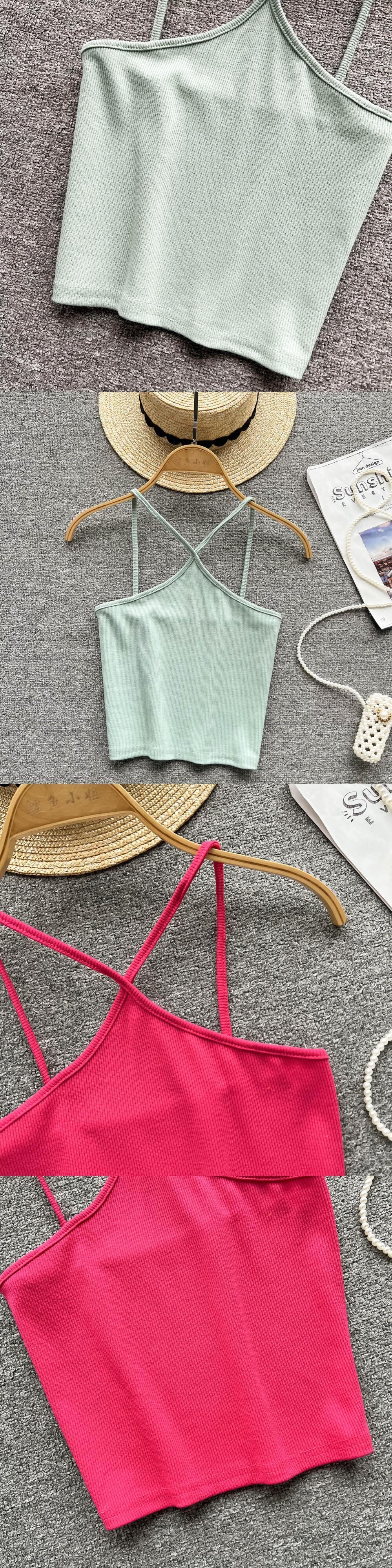 セクシーな無地のクロップトップスポーツスパゲッティストラップタンケトップの女性はブラをオフショルダーノースリーブの全能のキャミソールに組み込まれています ソリッドカラー Abe48989928625