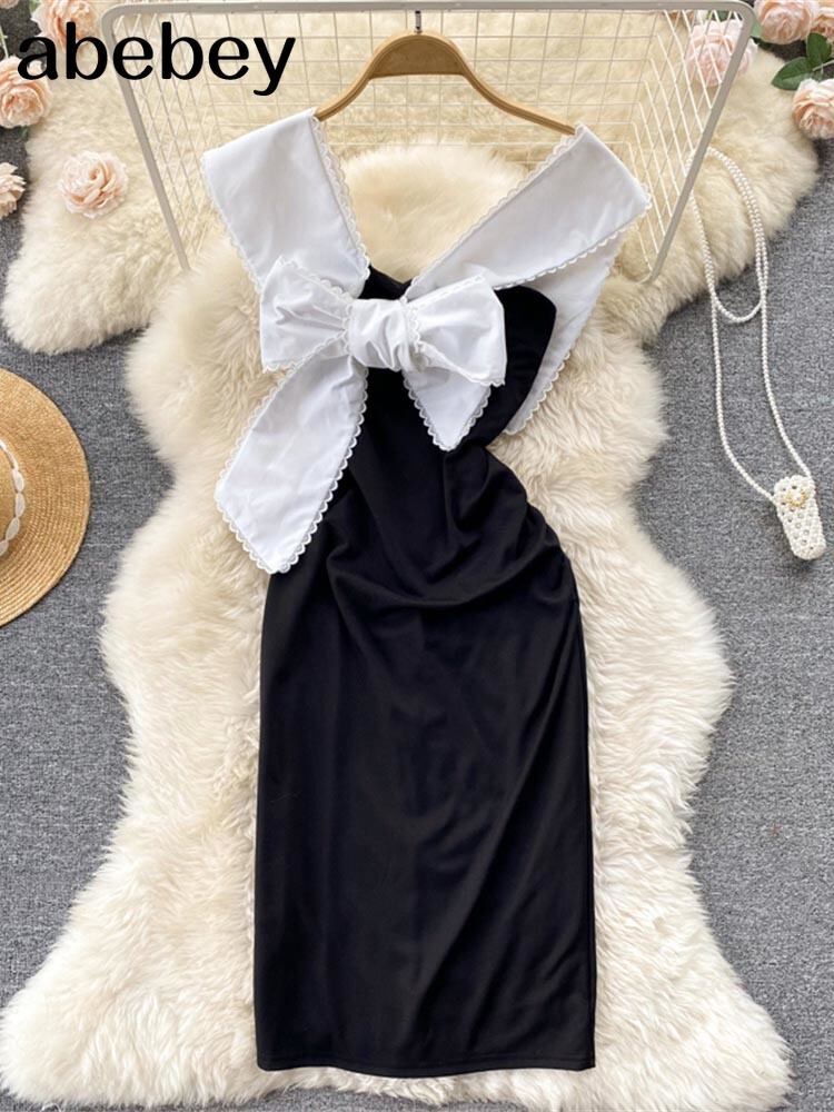 ボウノースリーブVネックセクシーミディドレス夏の女性2022年のクリスマスパーティーの衣装ビーチサンドレスローブの服 サマー 夏物 Abe80605475681