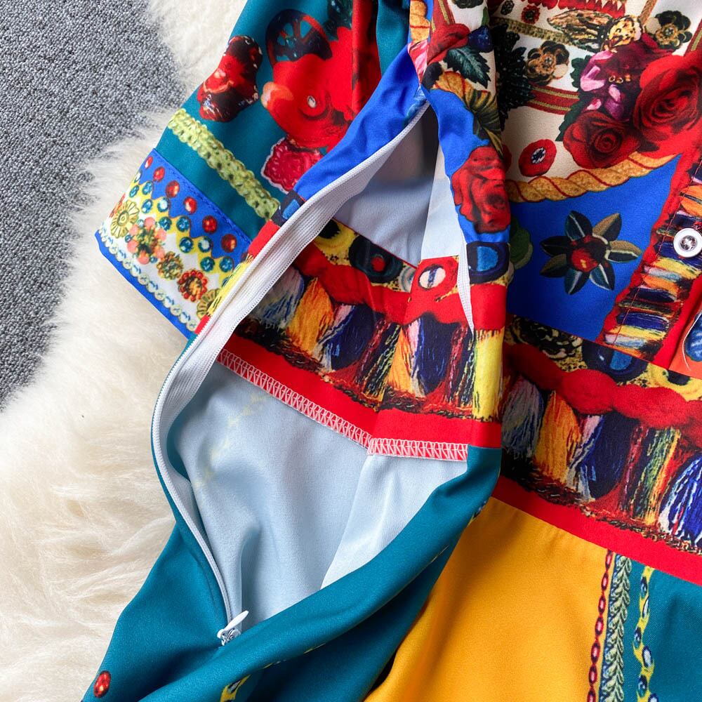 2022オフィスドレス女性プリント半袖ウエストAラインワークビジネスVestidosドレスミディ ショート ハーフスリーブ 会社 学校 通勤や通学にも Abe34225542622