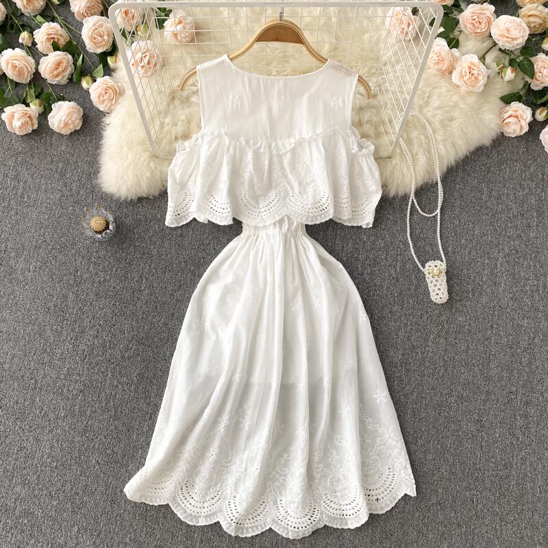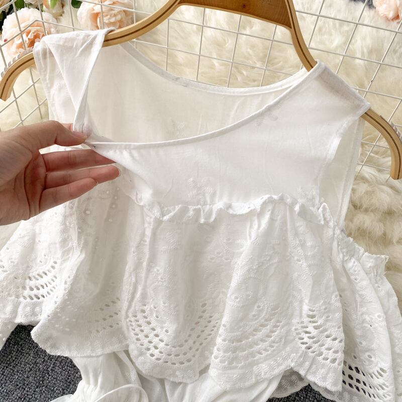 2022年夏の白いレースのドレスの女性のセクシーなoネック半袖ウエストAラインVestidosバケーションビーチローブ ショート ホワイト ハーフスリーブ サマー 夏物 Abe5153135326