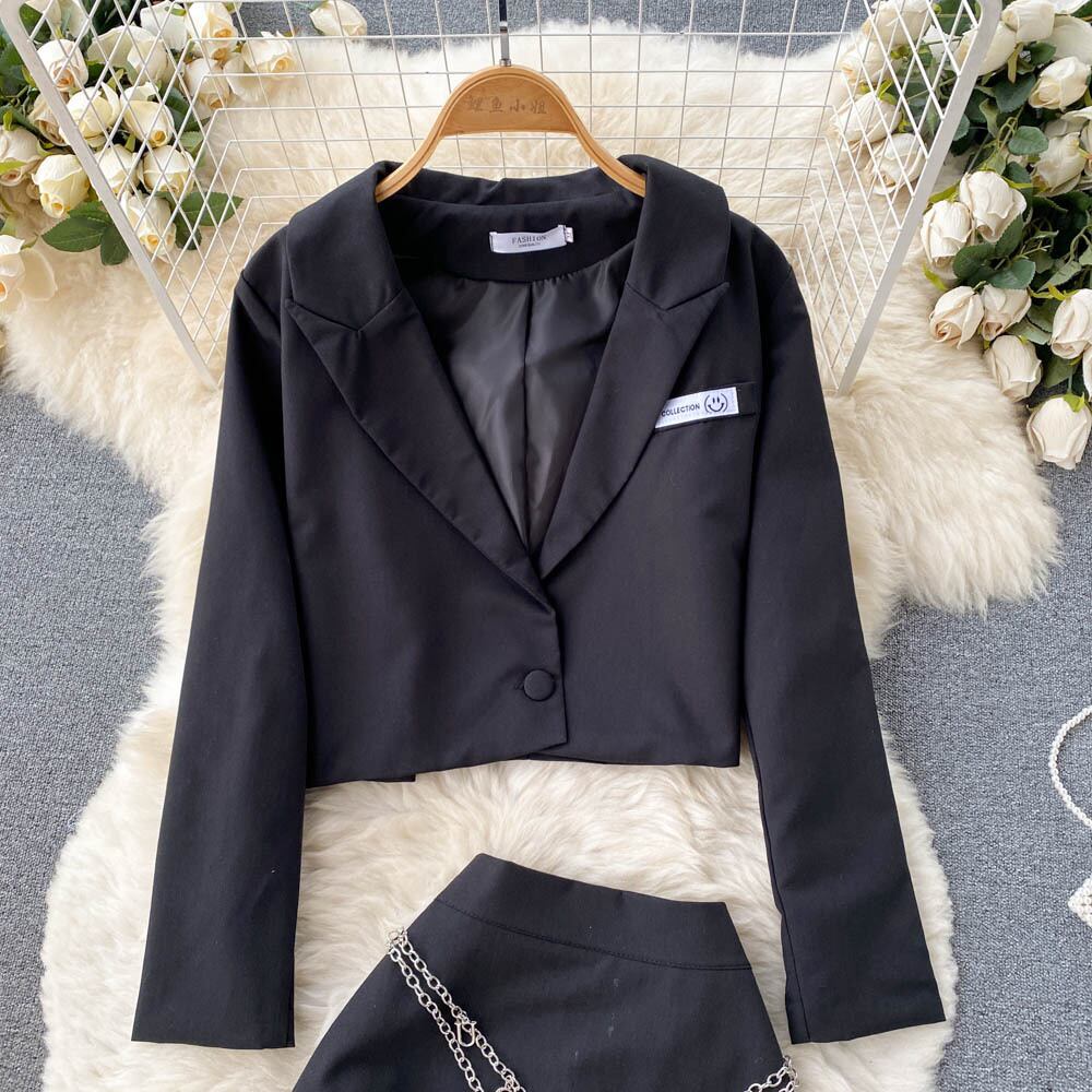 ツーピースセットヴィンテージ2022長袖ショートコート+ウエストイレギュラーAラインフリルスカートスーツ ロング ビンテージ Abe7127622188