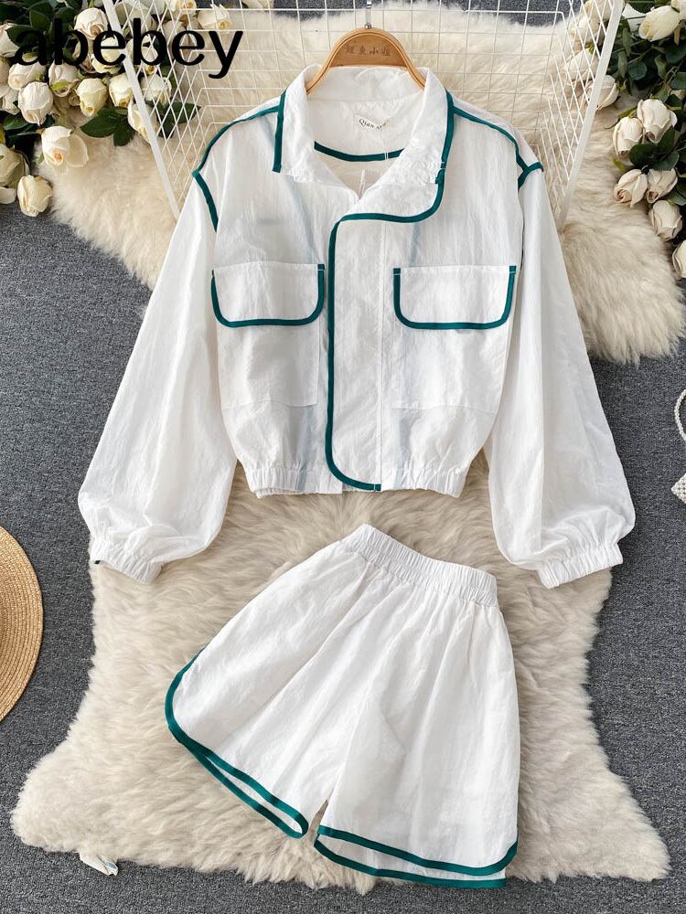 2022年女性ストライプツーピースセットセクシーな長袖コート+ウエストルーズパンツホワイトドレープスーツ ロング Abe93266645352