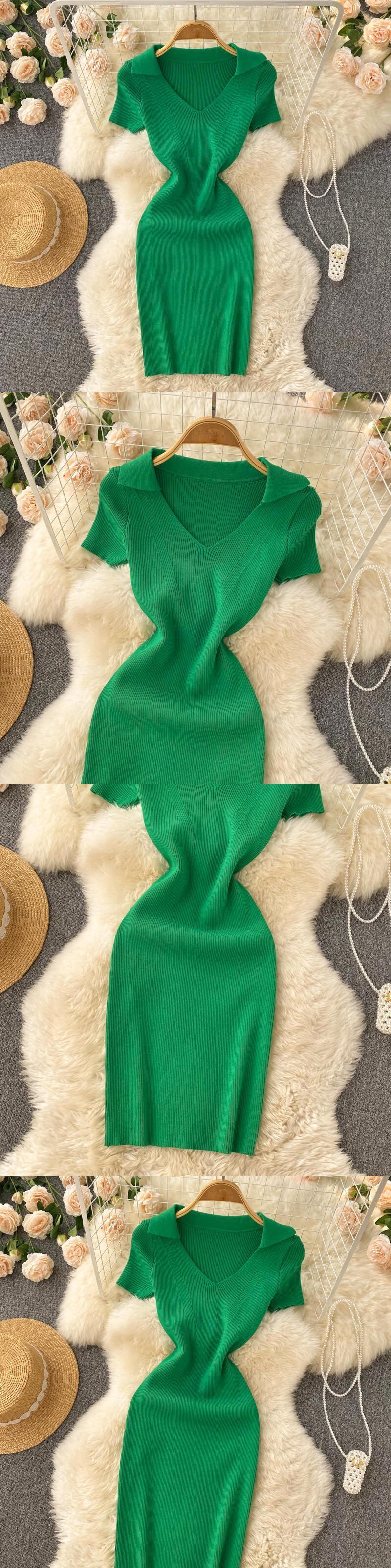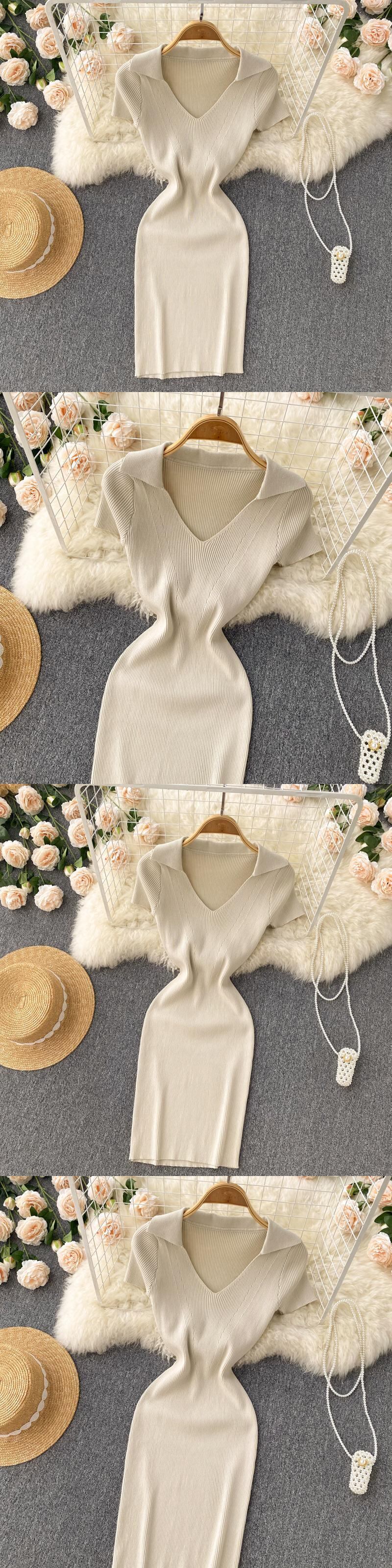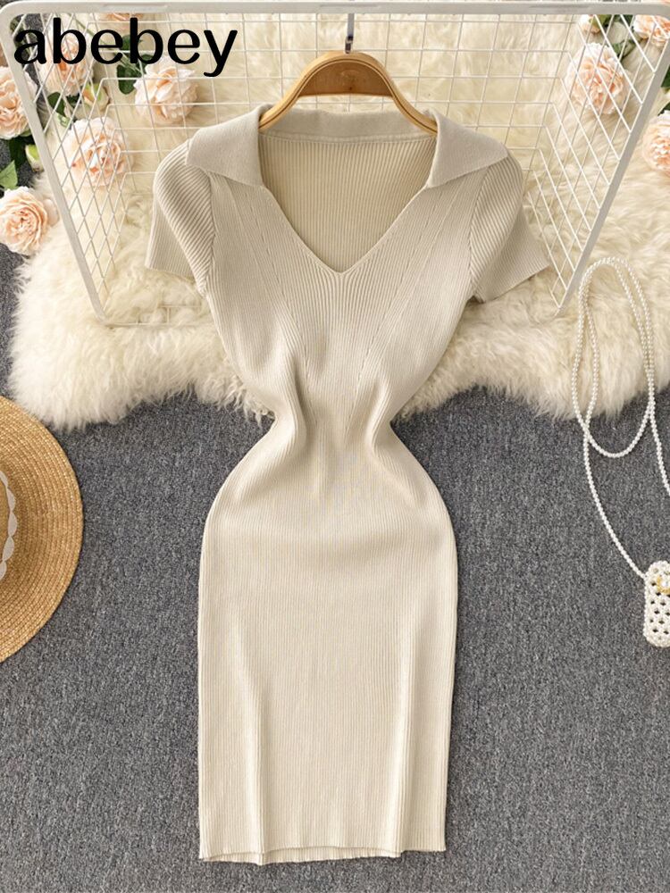 女性ニットドレス半袖Vネック伸縮性スリムペンシルドレス2022夏セクシーボディコンセータードレス ショート ハーフスリーブ エラスティック サマー 夏物 Abe90828705987