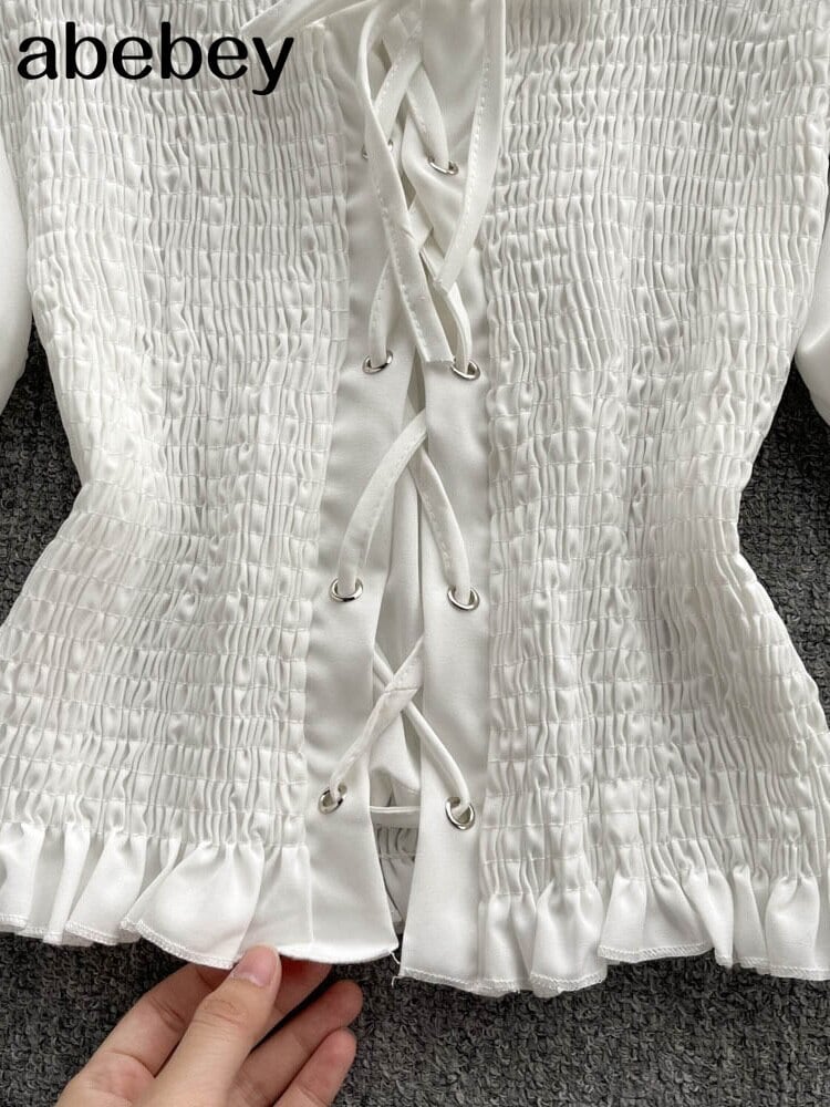 女性トップセクシーブラウスオフショルダートップ半袖クラブパーティーホワイトシャツパフスリーブフリルチュニッククロップトップサマーチューブトップ ショート ハーフスリーブ 夏物 Abe22105175034