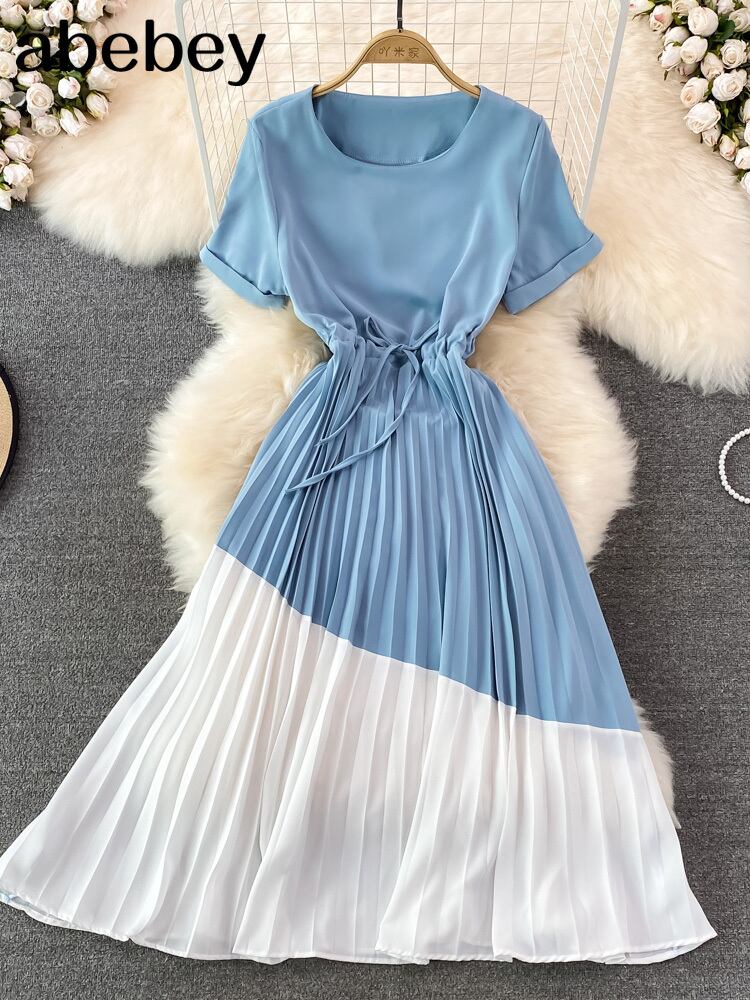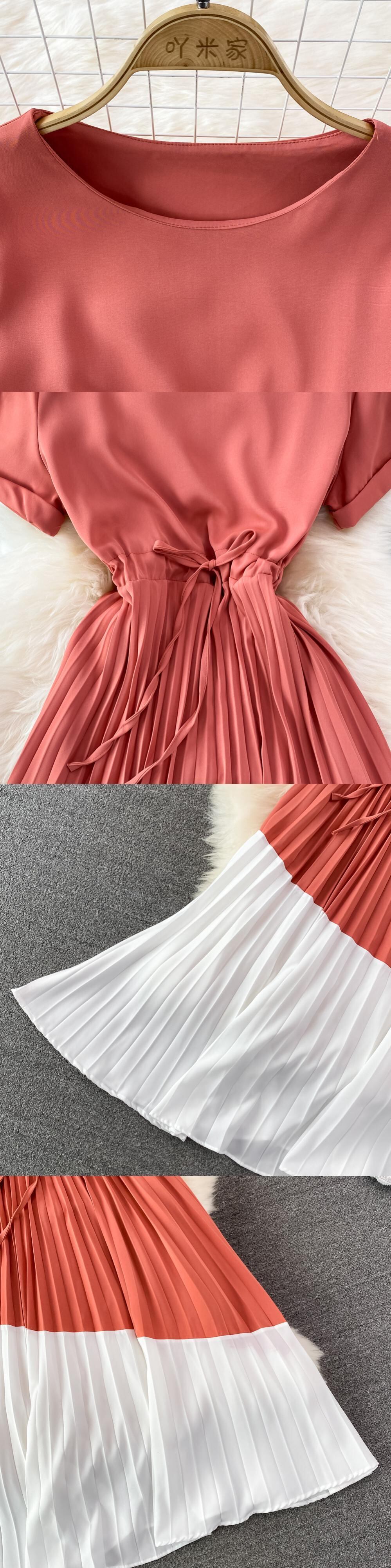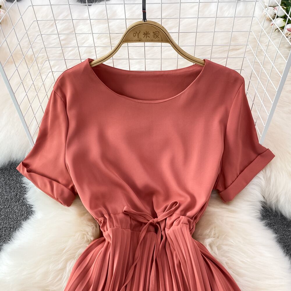 2022半袖ドレス女性ヴィンテージOネックAラインドレスサマースプライスストリートウェアドレスミディロングサンドレス ショート ハーフスリーブ 夏物 ビンテージ Abe31304353224