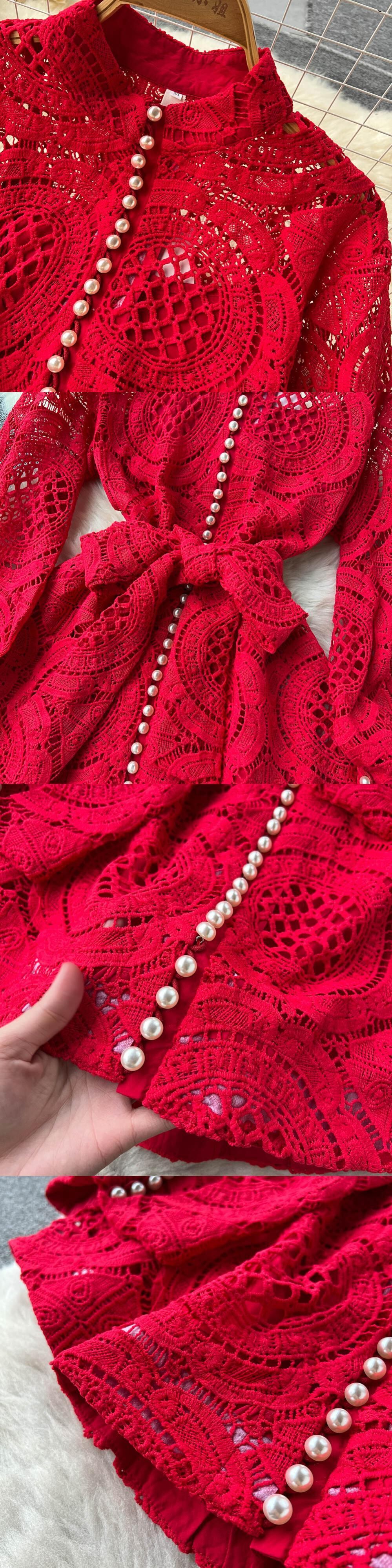 女性レース刺繡パーティードレスヴィンテージフリル長袖ドレスセクシーなOネックソリッドシアーメッシュドレス ロング 刺繍 ソリッドカラー ビンテージ Abe44500604804