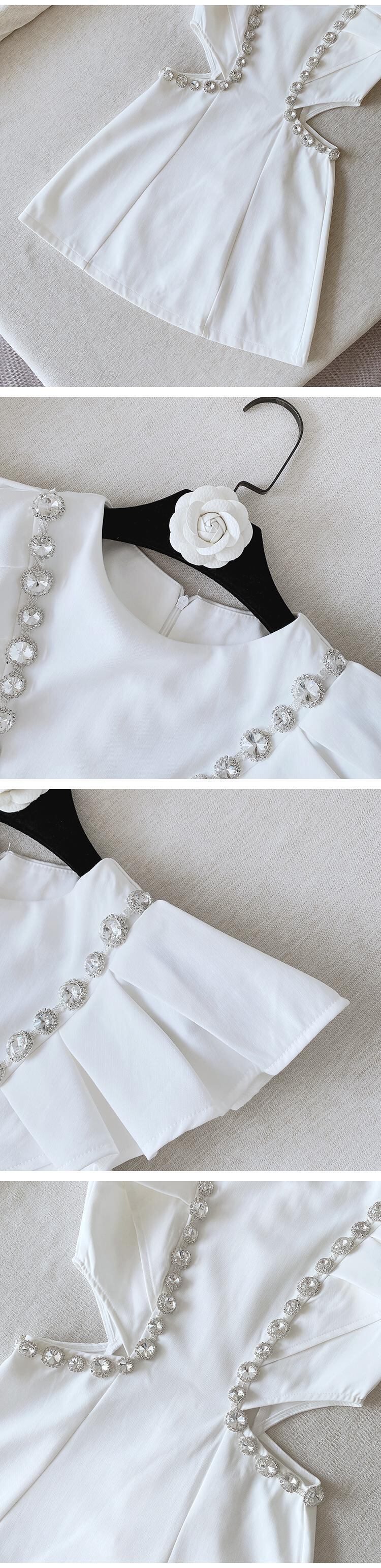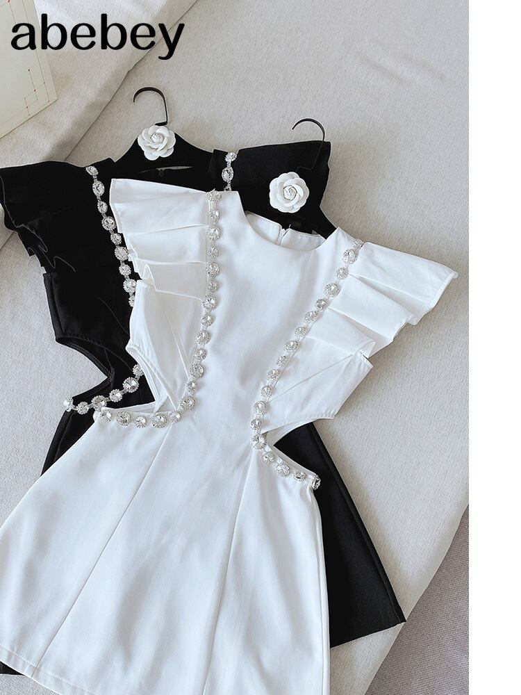 ダイヤモンドホローアウトレディースミニドレスソリッドブラックフレンチスタイルドレス2022年夏パーティーVestidosホワイトブラック サマー 夏物 ソリッドカラー Abe54775128409