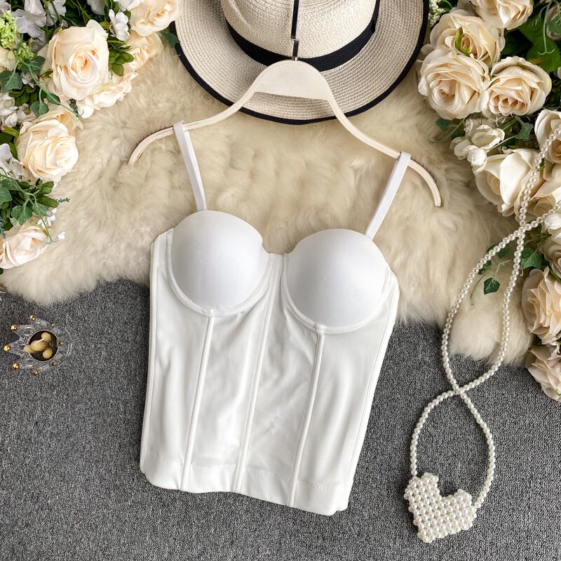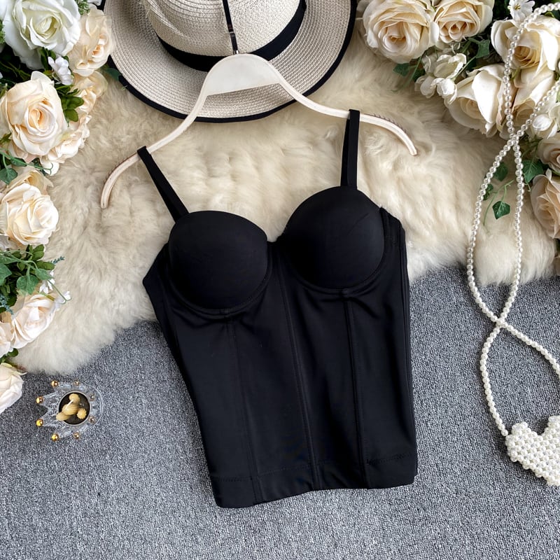 女性のセクシーなコルセットクロップトップサマースパゲッティストラップ無地プッシュアップビスチェトップス 夏物 ソリッドカラー Abe22362996319