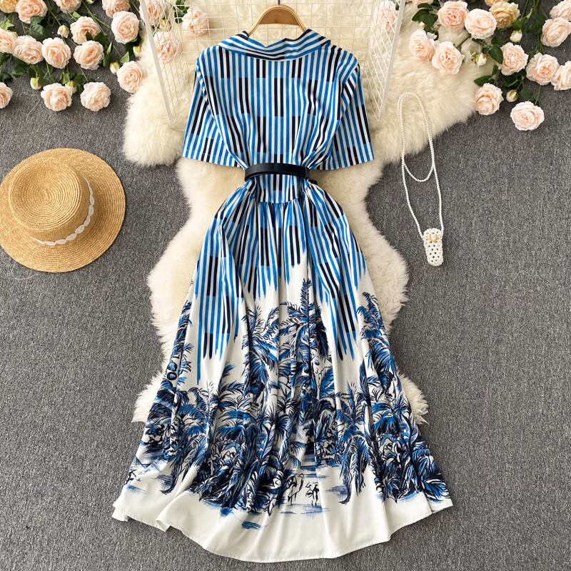 セクシーなスリムビーチロングドレスドレス女性2022夏半袖ミディVestidosVestidoマキシローブブルー ショート ハーフスリーブ サマー 夏物 Abe44974884368
