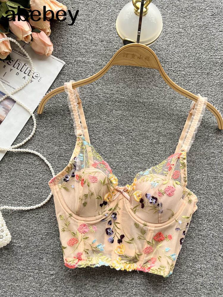 花柄クロップトップコルセットノースリーブスパゲッティストラップタンケトップブラジャーセクシーオフショルダーパッチワークキャミソールイン Abe5174881617