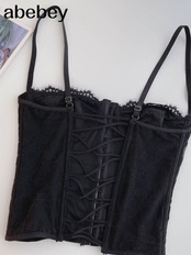 セクシーな刺繡レース女性キャミトップス女性コルセットブラレットキャミフロントボタンクロップかわいいベストフレンチシックなパーティークラブウェア 刺繍 大人ガーリー スウィート キュート カジュアル Abe15747950549