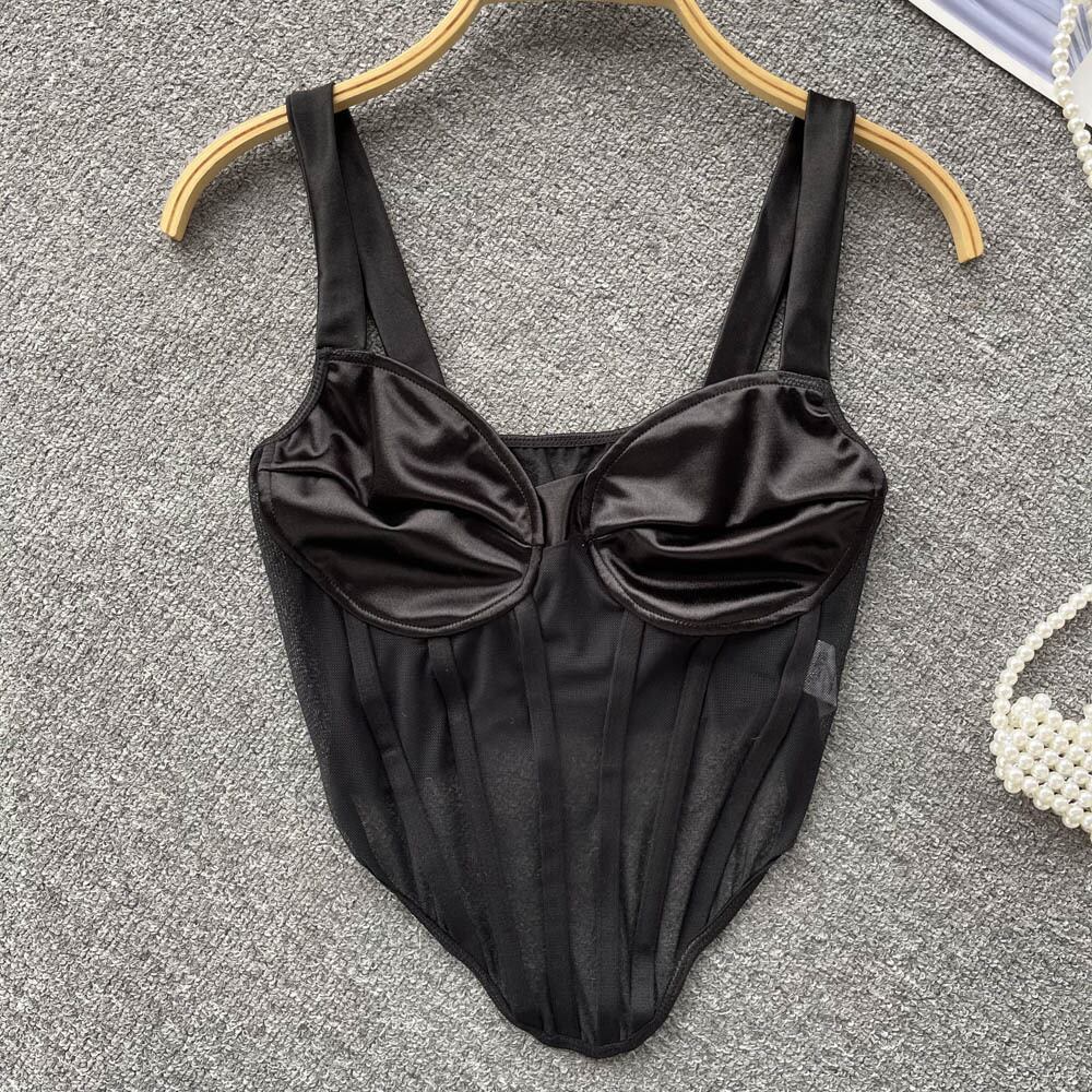 クロップトップレディースセクシーレースチェストバインダークロスウェビングトップタンクトップVintageLadySpaghettiTube Tops Inc Reto Corset Camisole コルセット ビンテージ Abe81198964708