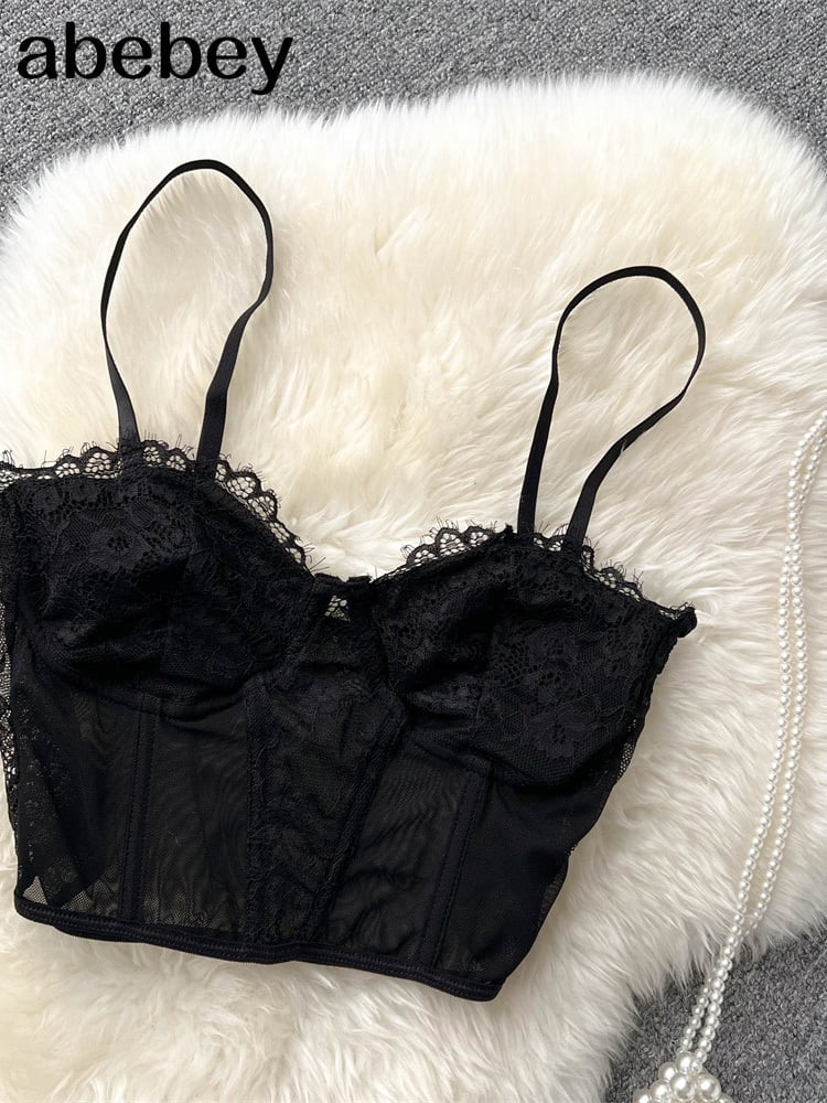 セクシーな刺繡レース女性キャミトップス女性コルセットブラレットキャミフロントボタンクロップかわいいベストフレンチシックなパーティークラブウェア 刺繍 大人ガーリー スウィート キュート カジュアル Abe70614379672