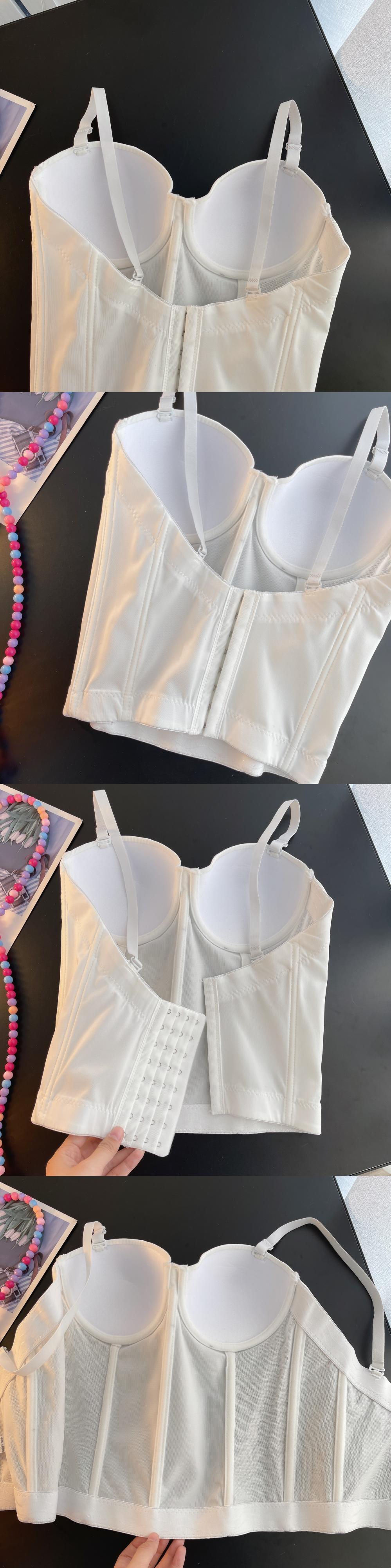ビスチェキャミソールブラセクシークロップトップスパゲッティストラップタンケトップスコルセット内蔵ブラオフショルダーキャミファッション無地キャミ ソリッドカラー Abe24781745314
