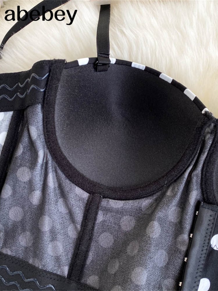 ドットバックレスボトムベストコルセットトップススリムクロップセクシーレースフィッシュボーンキャミソールレディースデバルデュールプッシュアップタンクトップベスト Abe23413630362