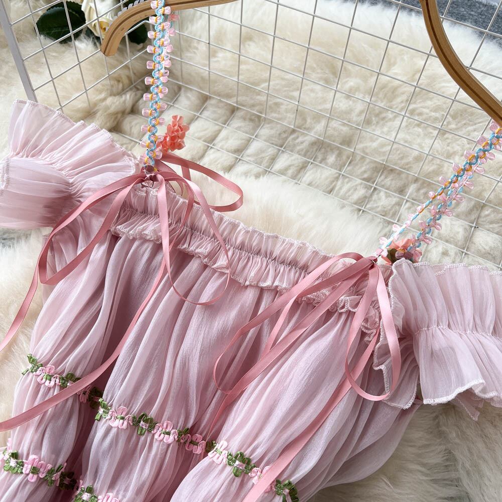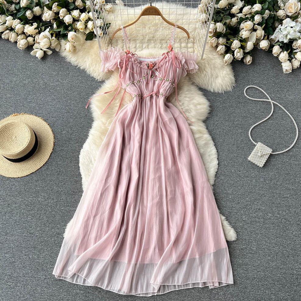 ノースリーブドレス女性定義ウエストメッシュフローラル2022ドレス女性ジェントルプリーツシックインパーティーウェア 花柄 Abe60406109601