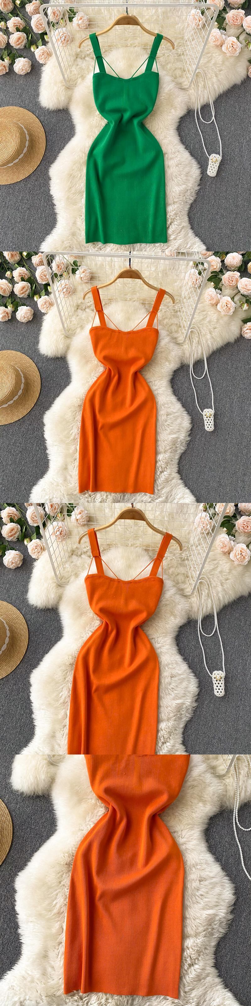グリーン2022女性ニットストラップドレスセクシーなノースリーブスリム伸縮性ペンシルドレスサマーボディコンストリートウェアショートドレス エラスティック 夏物 Abe75965303944