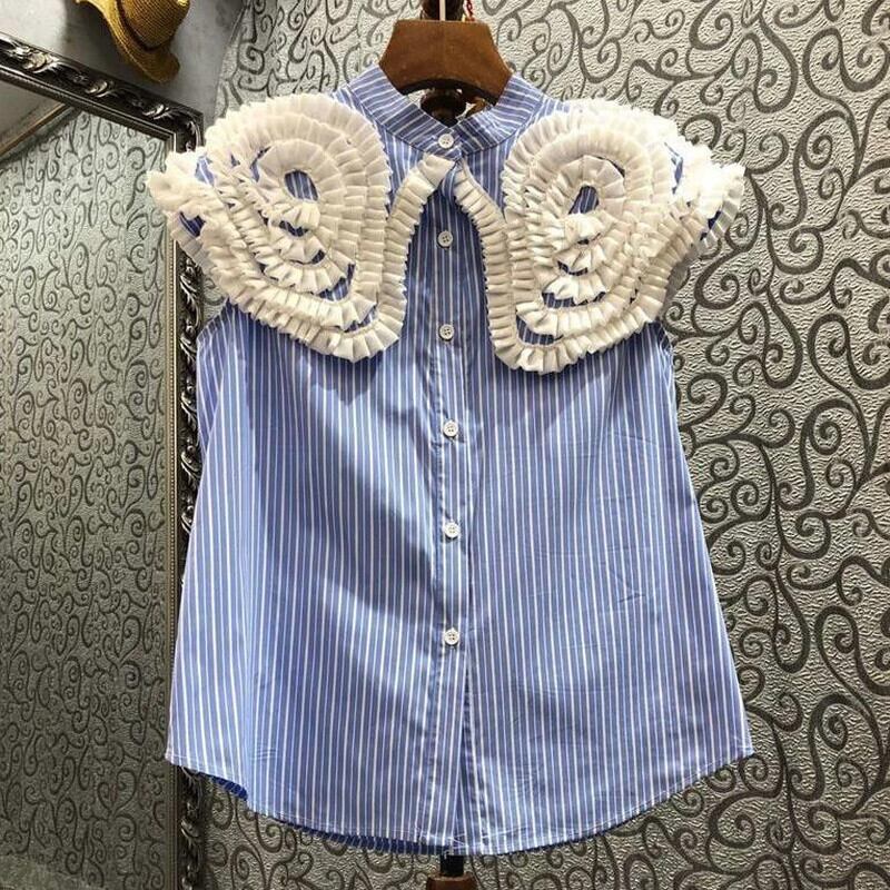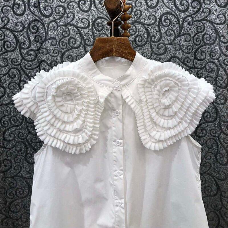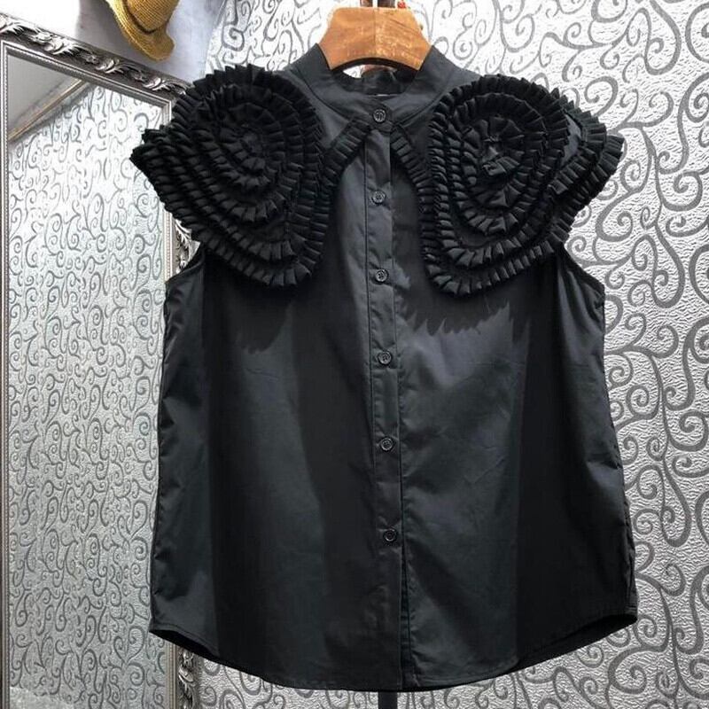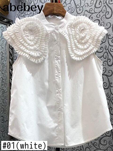 シックなプリーツの食用キノコ菌シングルブレストノースリーブシャツトップス夏のゆるいブラウス女性 サマー 夏物 Abe87408190499