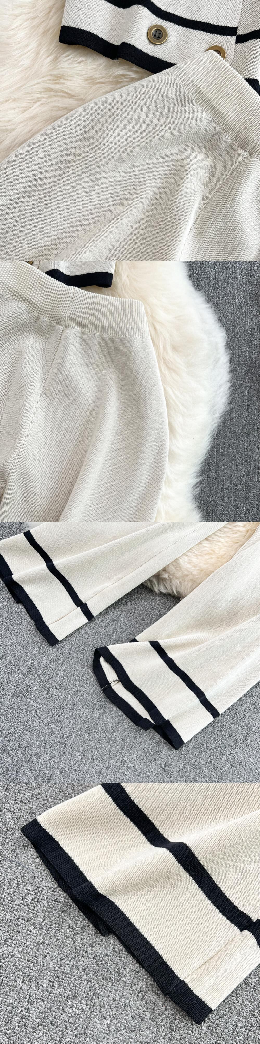 女性ツーピースセットブラックホワイトストライプ衣装ジョガーサマースプリングトップス+ロングパンツ巾着ニットトラックスーツセット 春物 夏物 Rhc13059535106