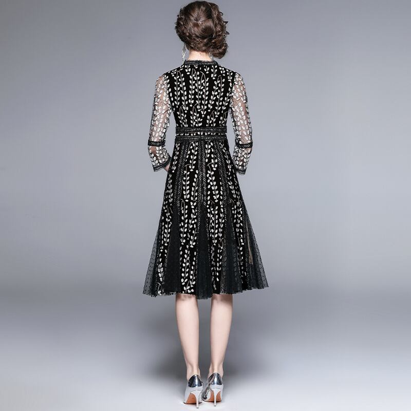 高級女性花刺繡パーティードレスレディフランストレンディメッシュミディVestidos 刺繍 フラワーデザイン Rhc31886670551