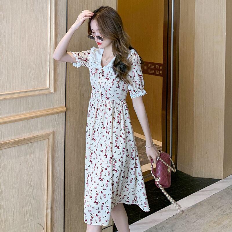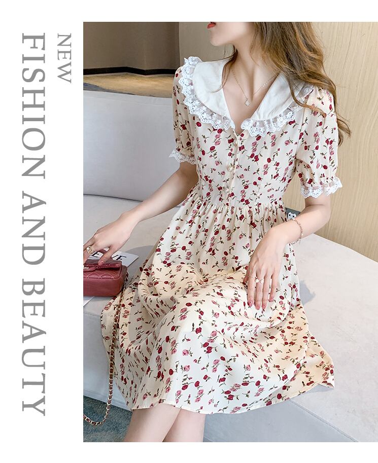 夏の半袖ドレス女性のレースパッチワークオールマッチスタイリッシュなレジャーシフォンホリデーフレンチスタイル ショート ハーフスリーブ サマー 夏物 Rhc19857618682