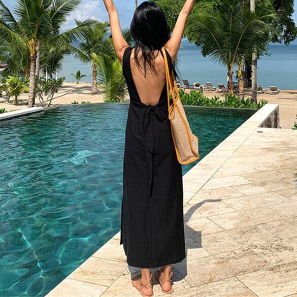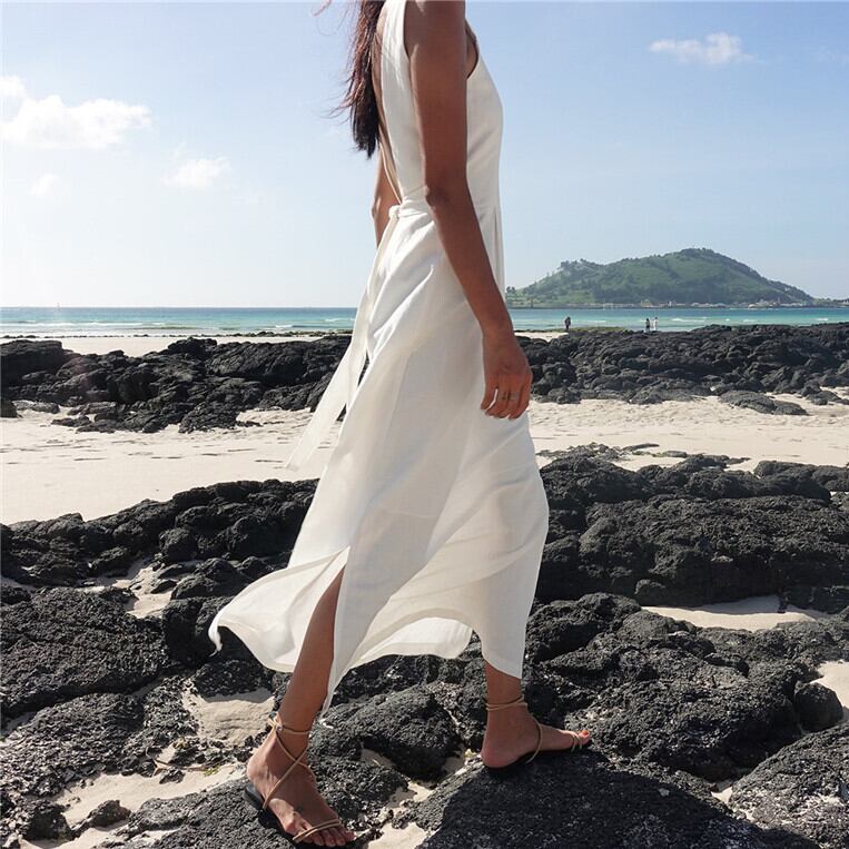 2022年夏の気質バックレスビーチホリデードレスボヘミアンスパゲッティストラップコットン足首丈ドレス サマー 夏物 Rhc56346613699