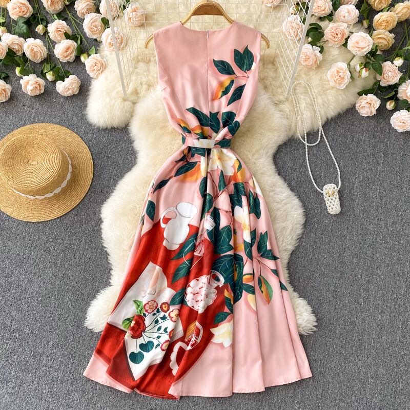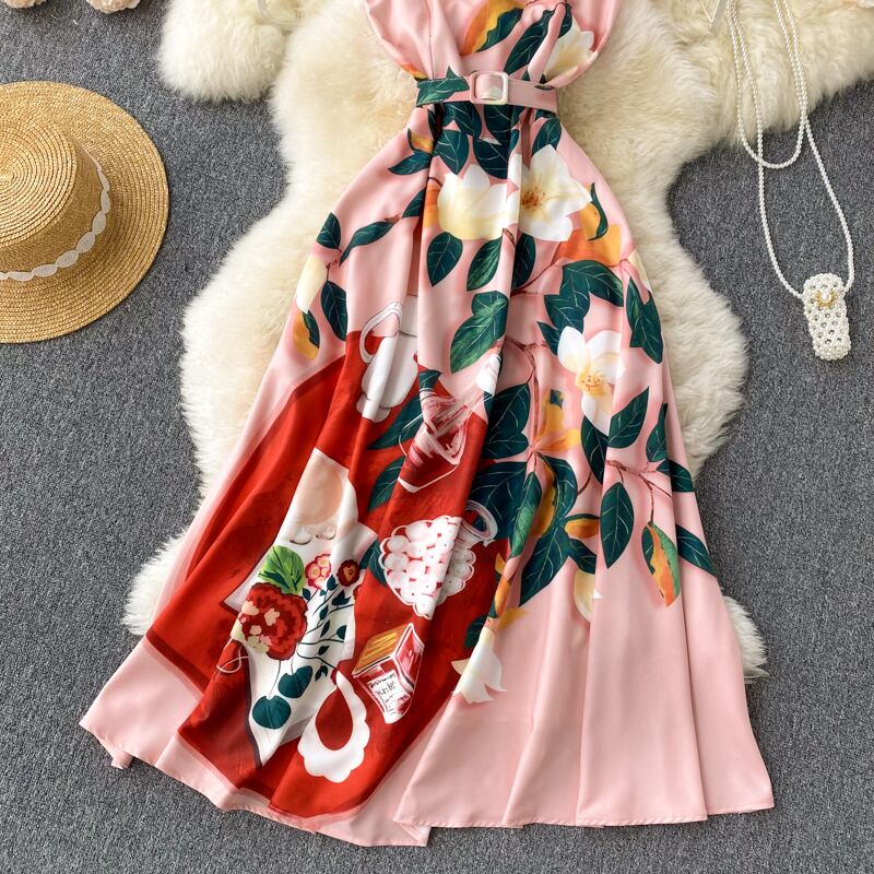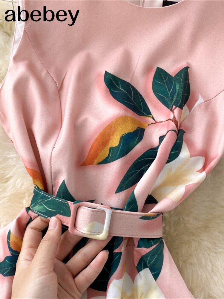 ヴィンテージフローラルプリントセクシーストラップサマーパーティーナイトドレスパディングシックミディロングアラインエルビスローブ 夏物 花柄 Aライン ビンテージ Abe24125970234