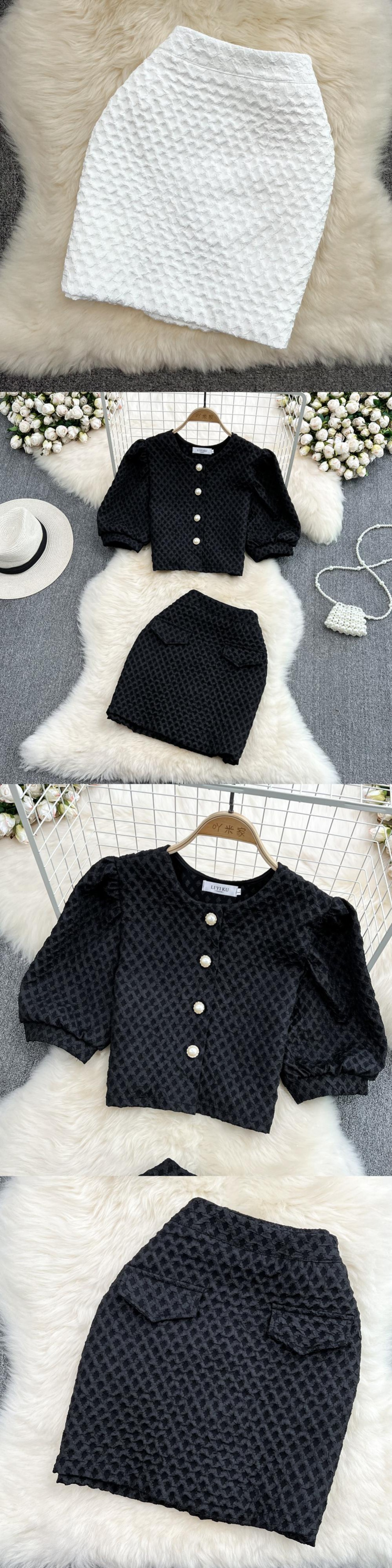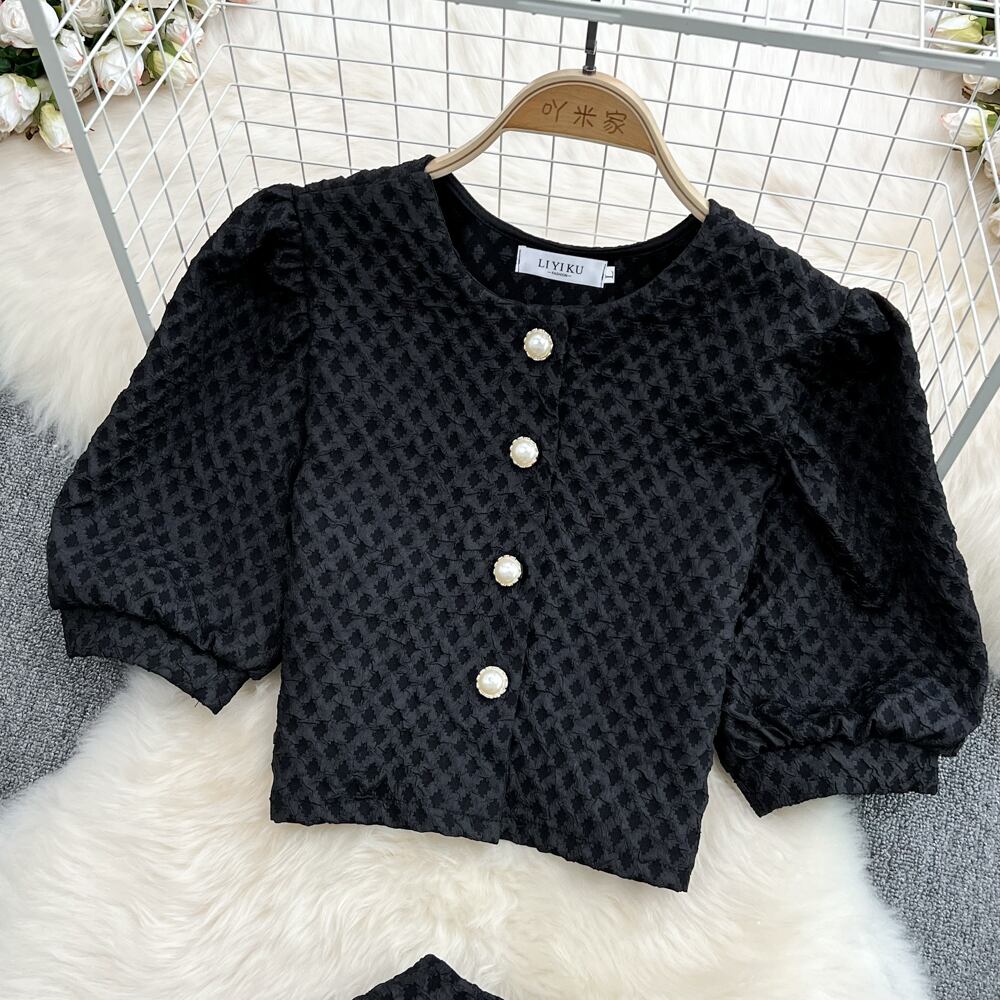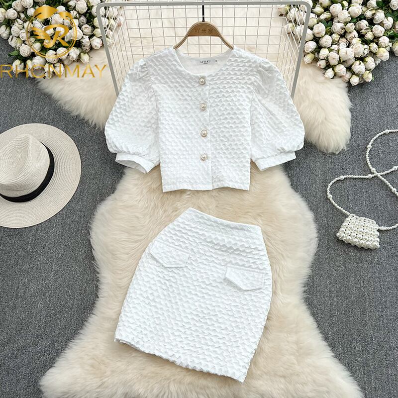 スウィートサマー2点セット女性チェック柄シングルボタンカーディガントップ+ミニボディコンスカートセット2PCSスーツマッチングセット 大人ガーリー キュート カジュアル 夏物 Rhc52515885553