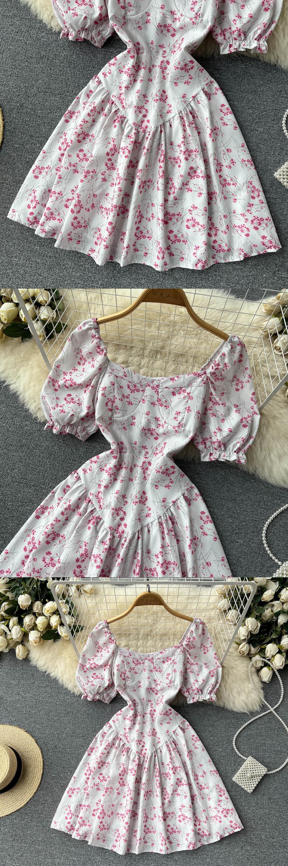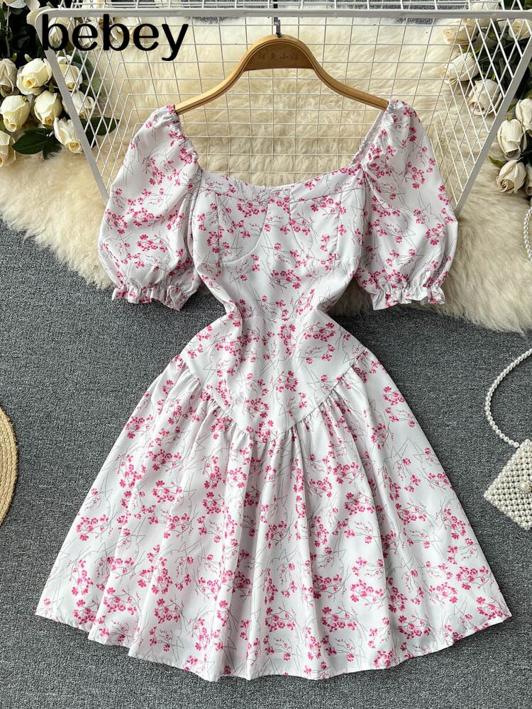 Vestidos Vintage Vintage PrintPuffSleeveサマービーチスウィートドレススクエアカラーフローラルミディドレス2022フェスタ 大人ガーリー キュート カジュアル 夏物 花柄 スクウェア ビンテージ Abe60747095882