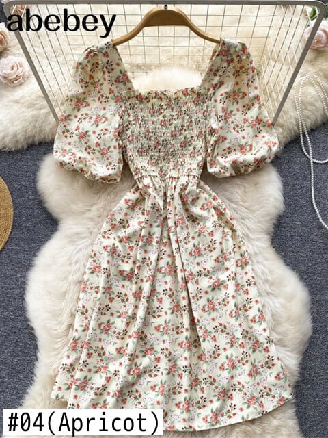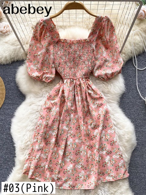 スクエアカラーシフォンフローラルドレスカワイAラインヴェスティドブラックミニヴェスティドスベラノ2022NEWレトロかわいい原宿服 大人ガーリー スウィート キュート カジュアル 花柄 スクウェア Abe67135430831