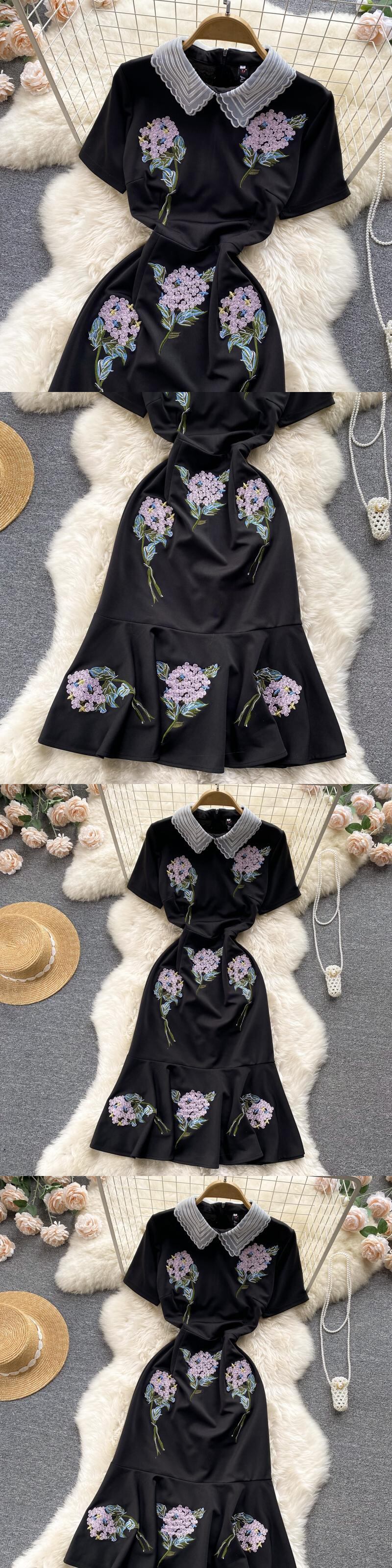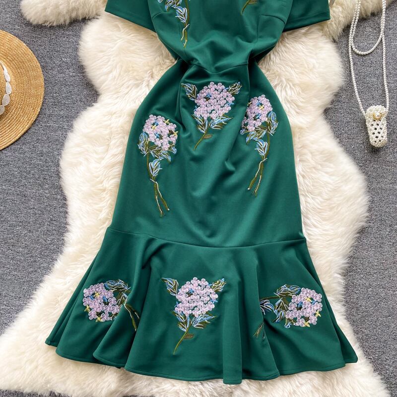 2022フローラルレトロミディドレス半袖グリーンビーチロングドレスヴィンテージボヘミアンブラックドレス女性 ショート ハーフスリーブ 花柄 ビンテージ Abe71822150857