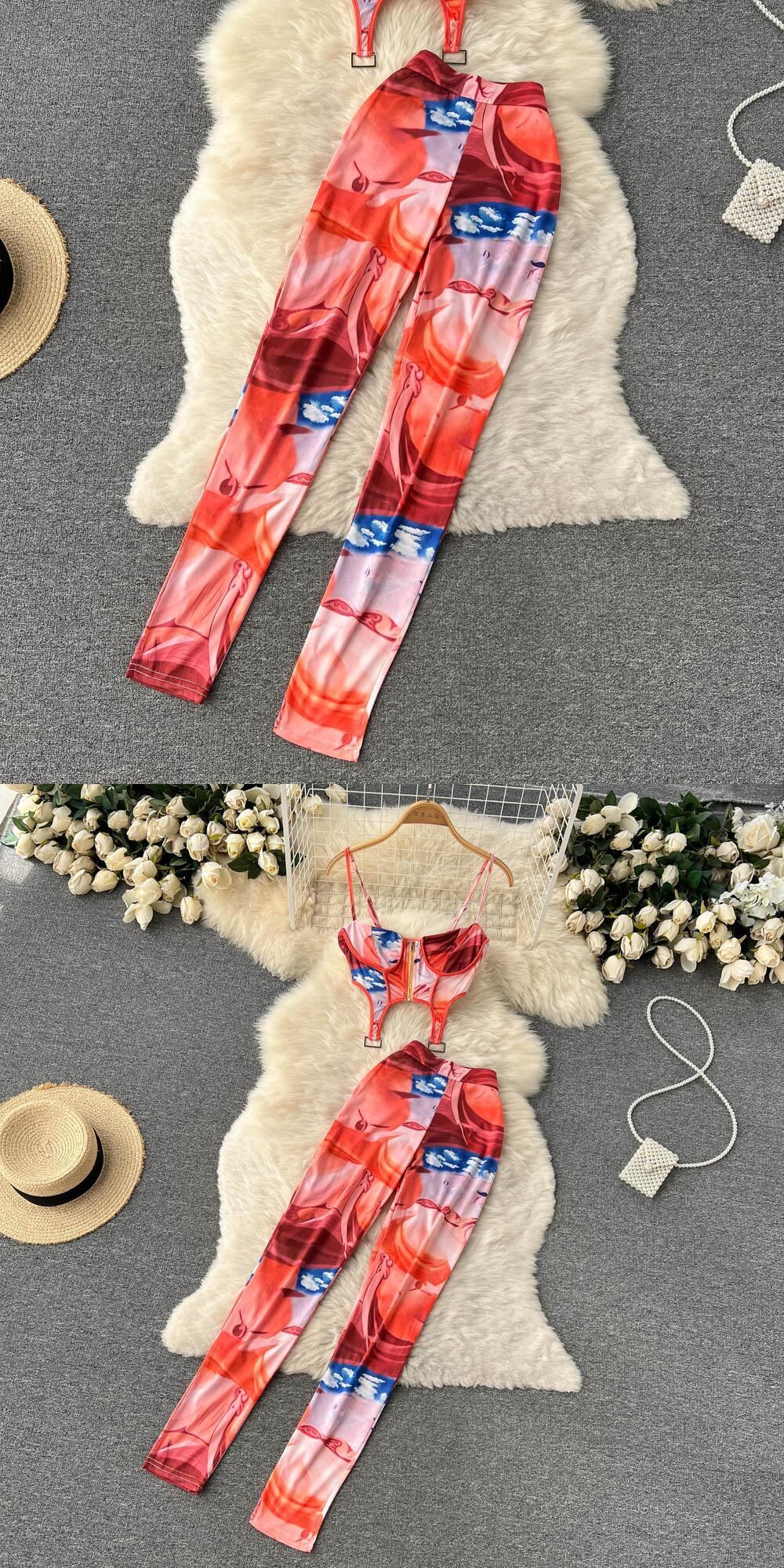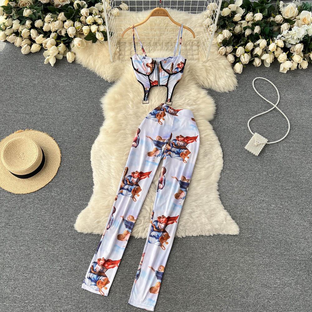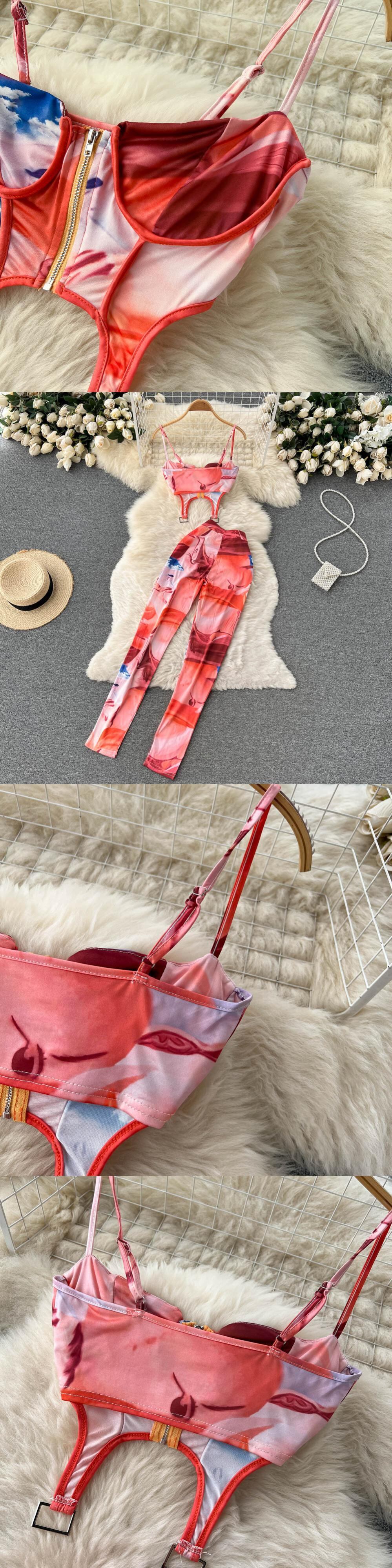 女性サマースリムビーチセット2022Y2Kセクシーバケーションエラスティックウエストクロップストラップトップスプリント2プライスセット 伸縮 夏物 Abe20054563906