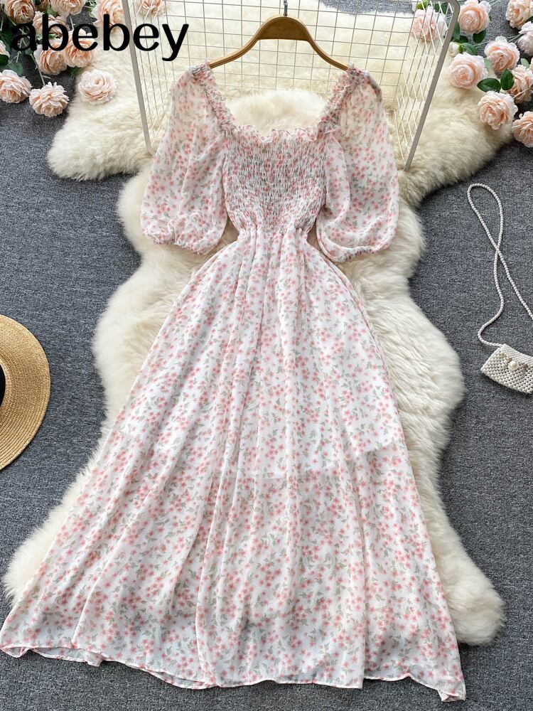 2022スクエアカラーサマードレスビーチレディースヴィンテージフリル自由奔放に生きるドレスローブドレスVestidosビーチサンドレス ラッフル 夏物 スクウェア ビンテージ Abe20078705343