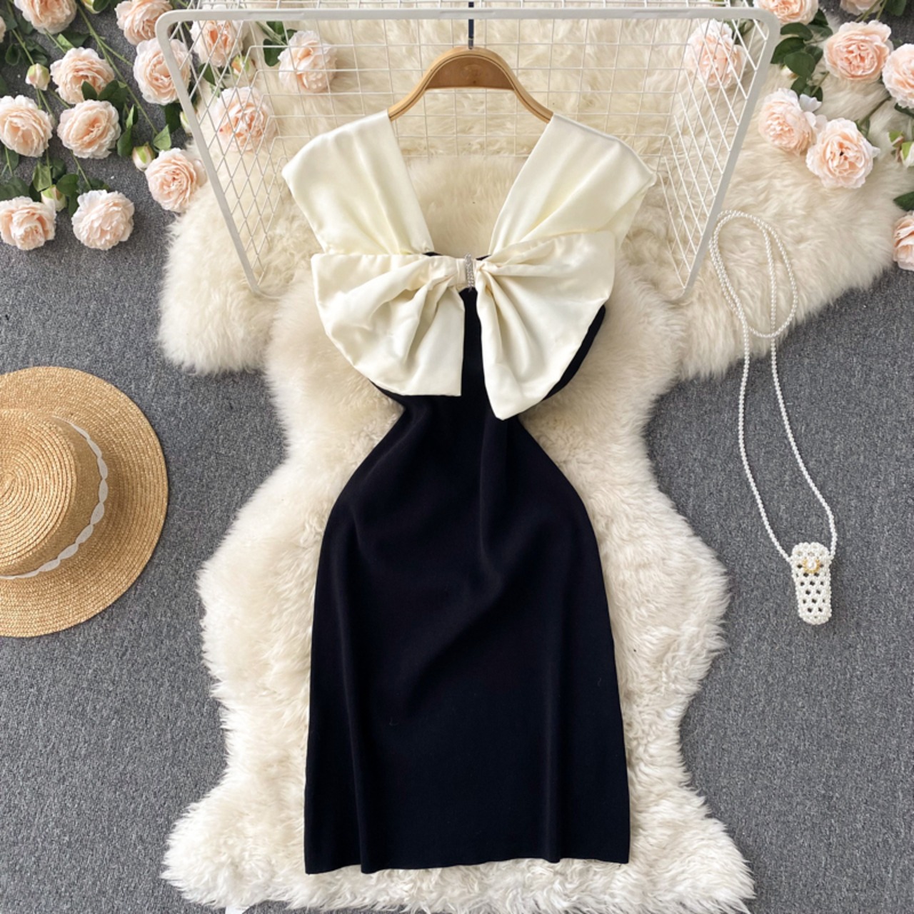 2022年夏のセクシーな女性の弓スパゲッティストラップミニドレス春のノースリーブウエストパーティークラブボディコンAラインドレス リボン スプリング 春物 サマー 夏物 Abe19843841881