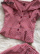 女性サマーパンツスーツ2ピースセットチェック柄プリントノースリーブトップ&ワイドレッグパンツ衣装2022 夏物 ワイドパンツ Abe44458392797
