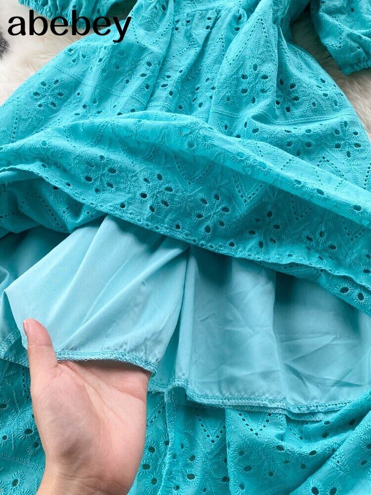 レディースAラインドレスミディドレスホワイトグリーンピンク半袖無地フリルパッチワークサマースリムスクエアカラー2022 ショート ハーフスリーブ 夏物 ソリッドカラー スクウェア Abe83721163937