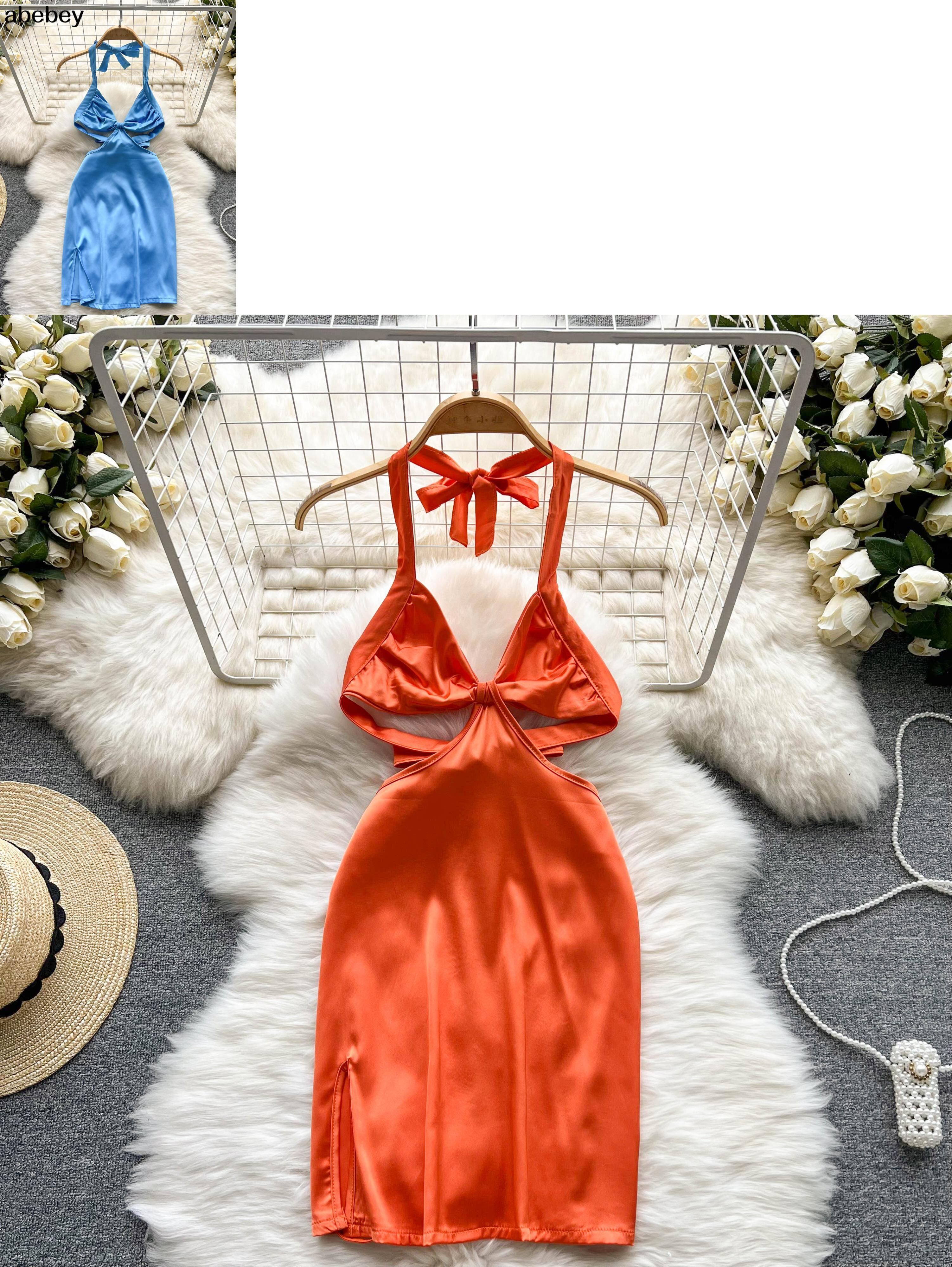 セクシーなドレスの婦人服スパゲッティストラップ中空アウトノースリーブスリムシース春夏ミニドレスレディVestidos スプリング 春物 サマー 夏物 Abe81535534561